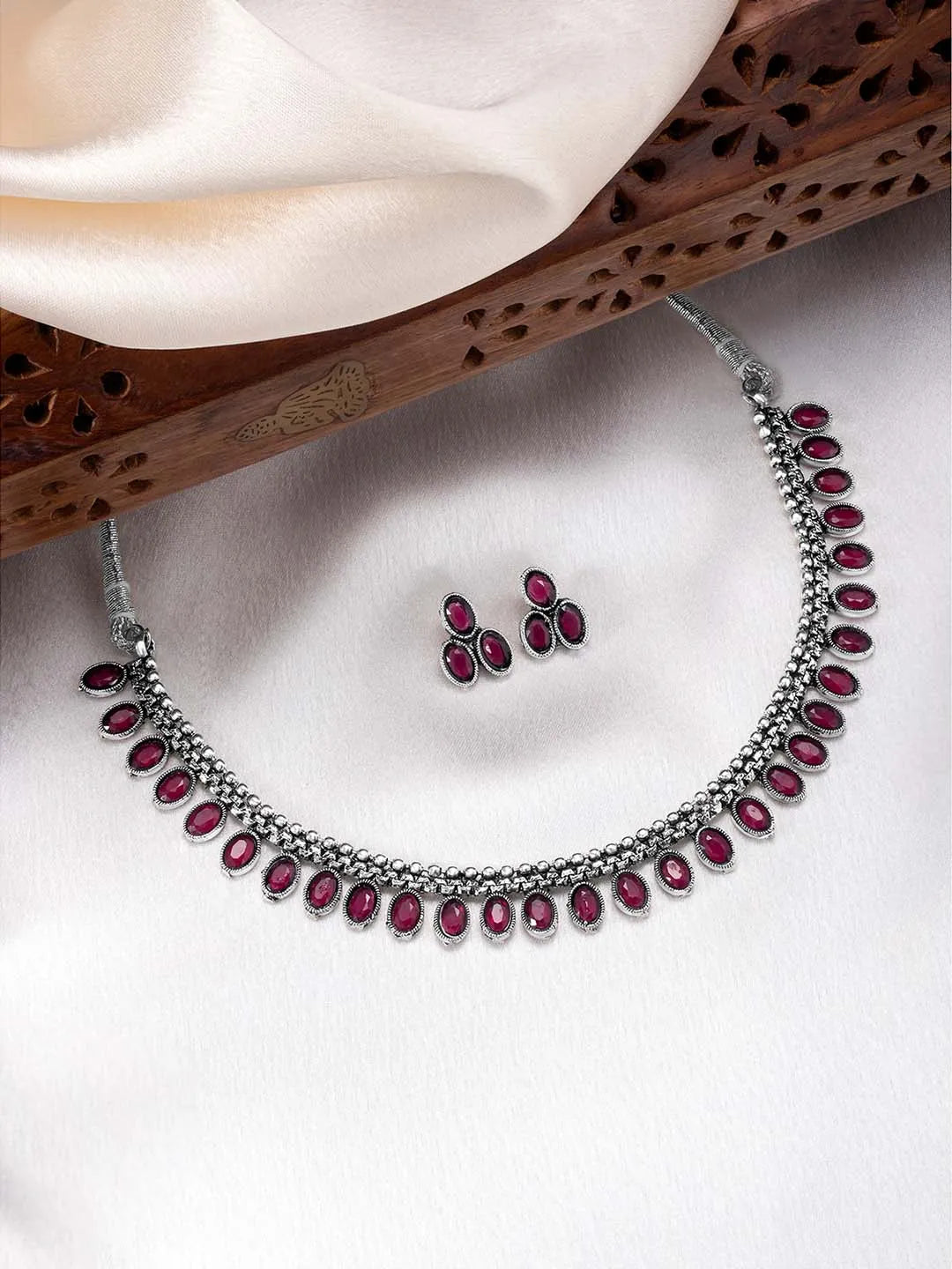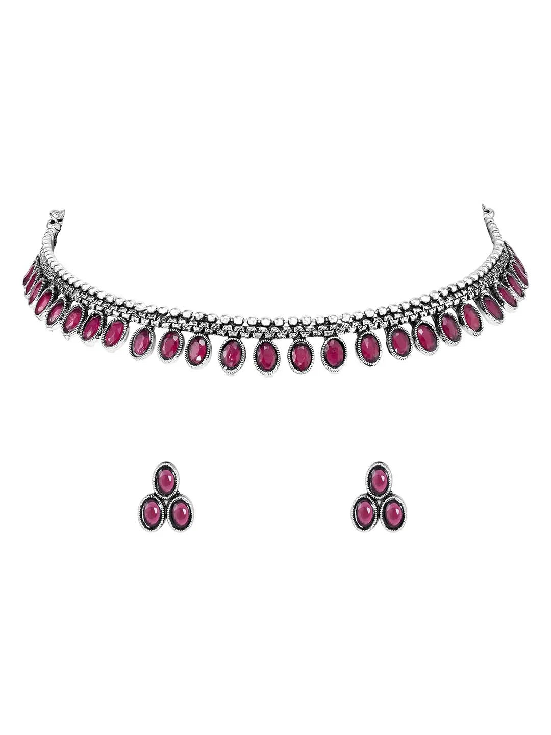Product Name: Elegance Synthetic Stone Necklace Set - Rani Pink