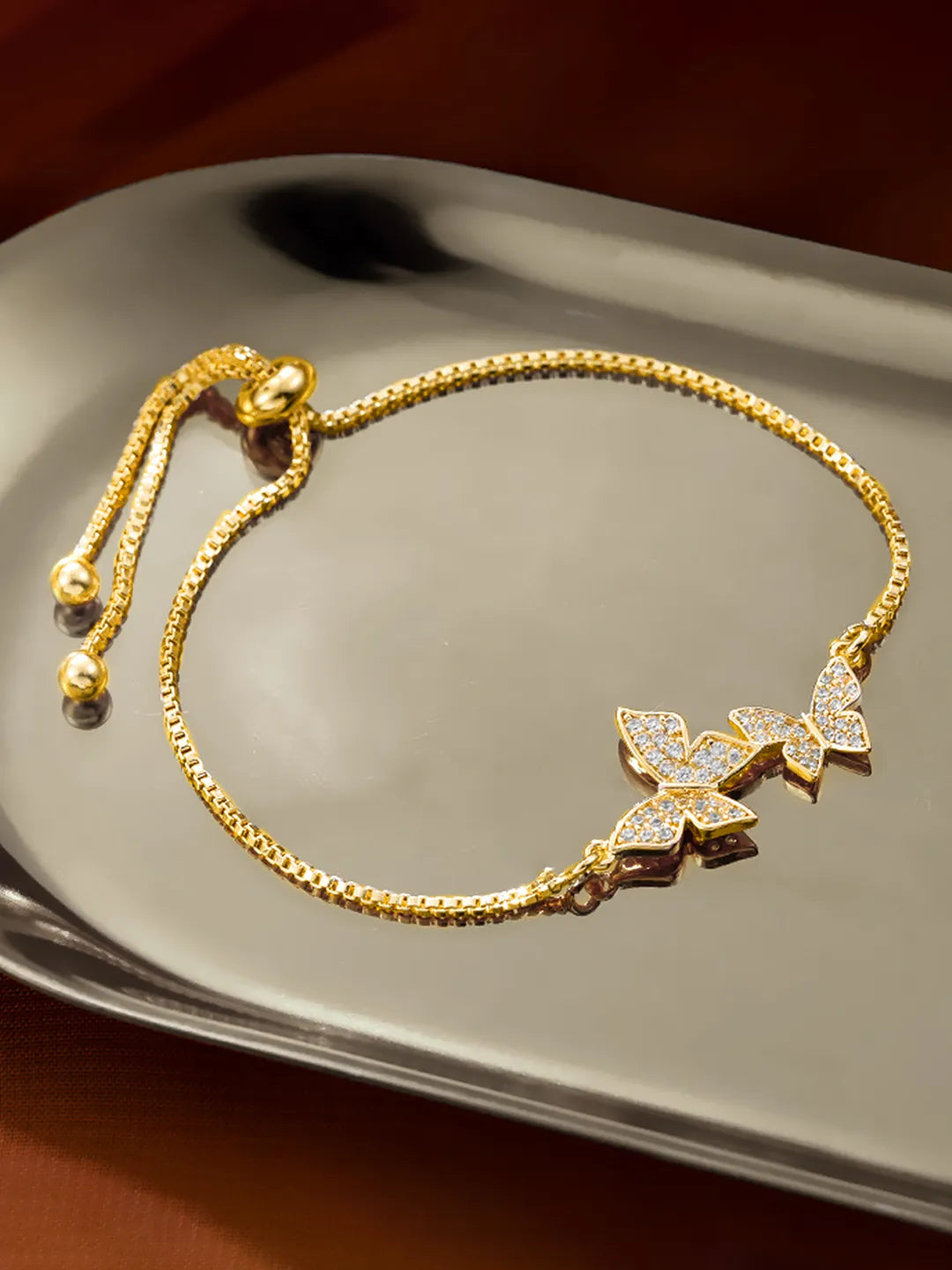 Product Name: Elegant Adjustable Butterfly CZ Bracelet - Gold