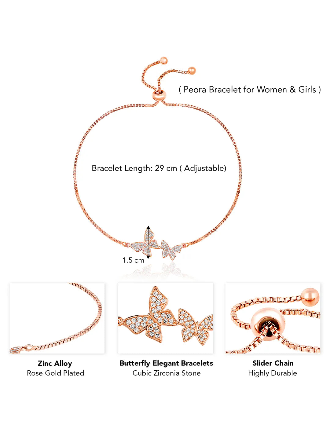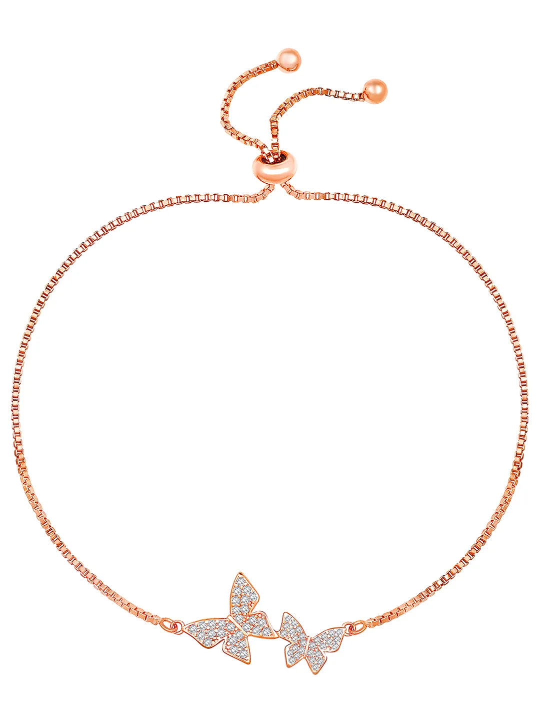 Product Name: Elegant Adjustable Butterfly CZ Bracelet - Rose Gold