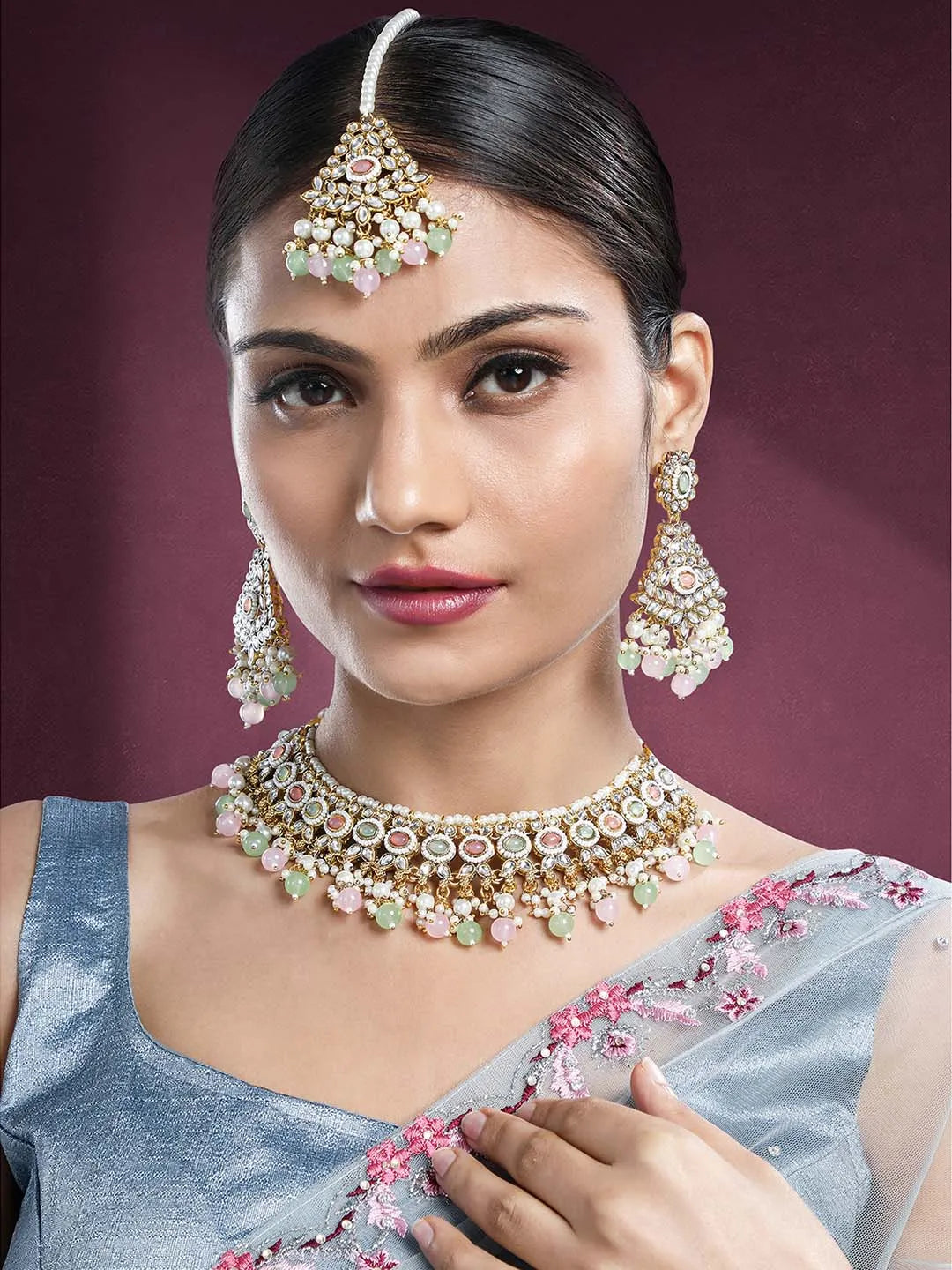 In the Box: 1 Necklace 1 Pair of Earrings 1 Maangtikka