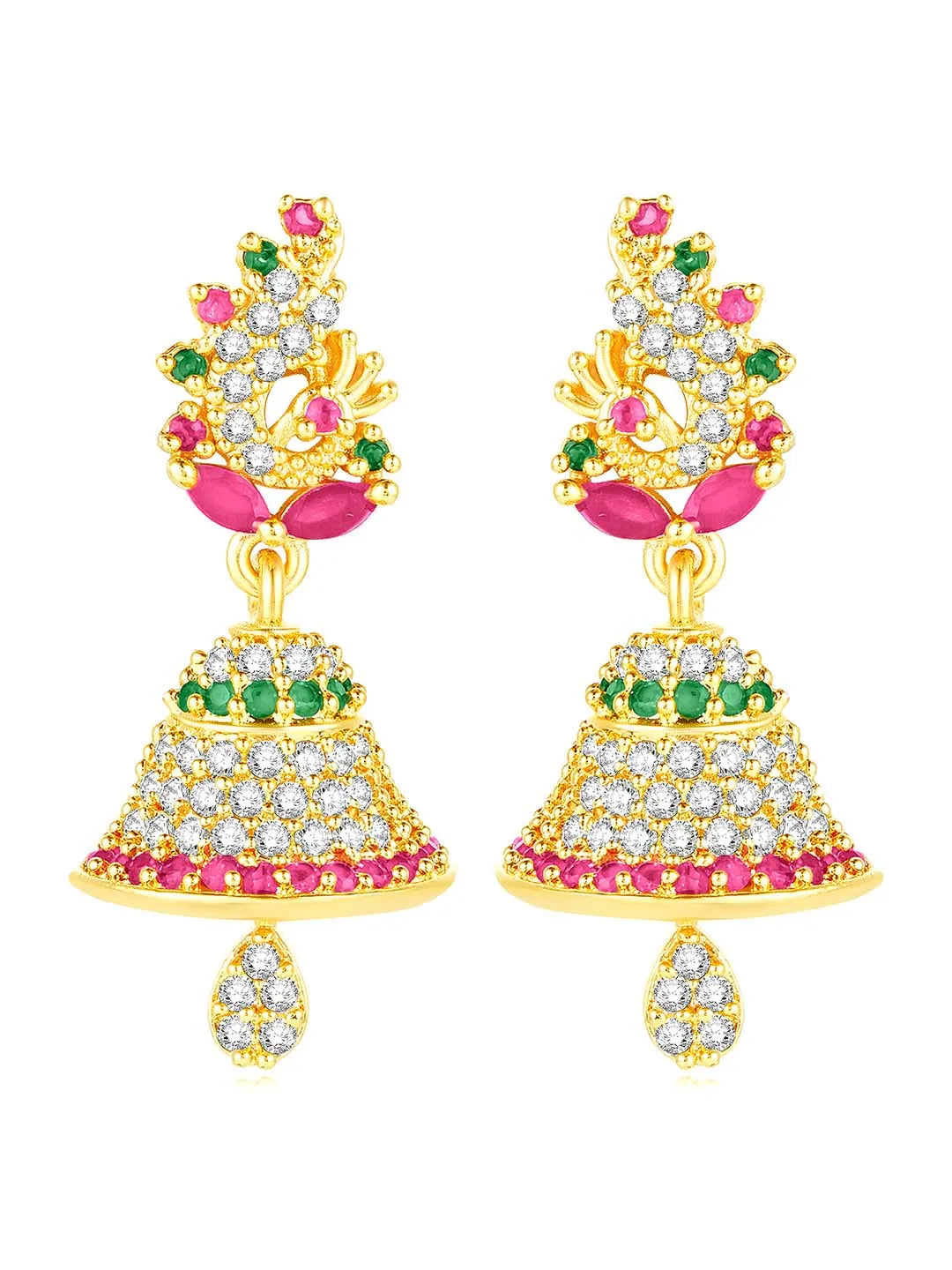 Product Name: Elegant Duo CZ Jhumki Earrings - Rani Pink Green