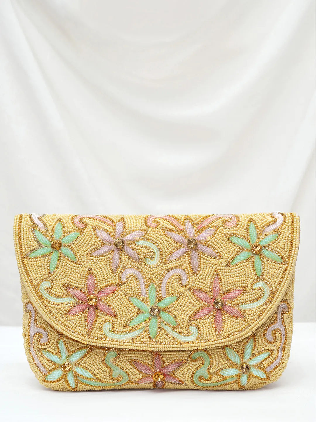 Product Name: Elegant Floral Embroidery Party Clutch - Cream