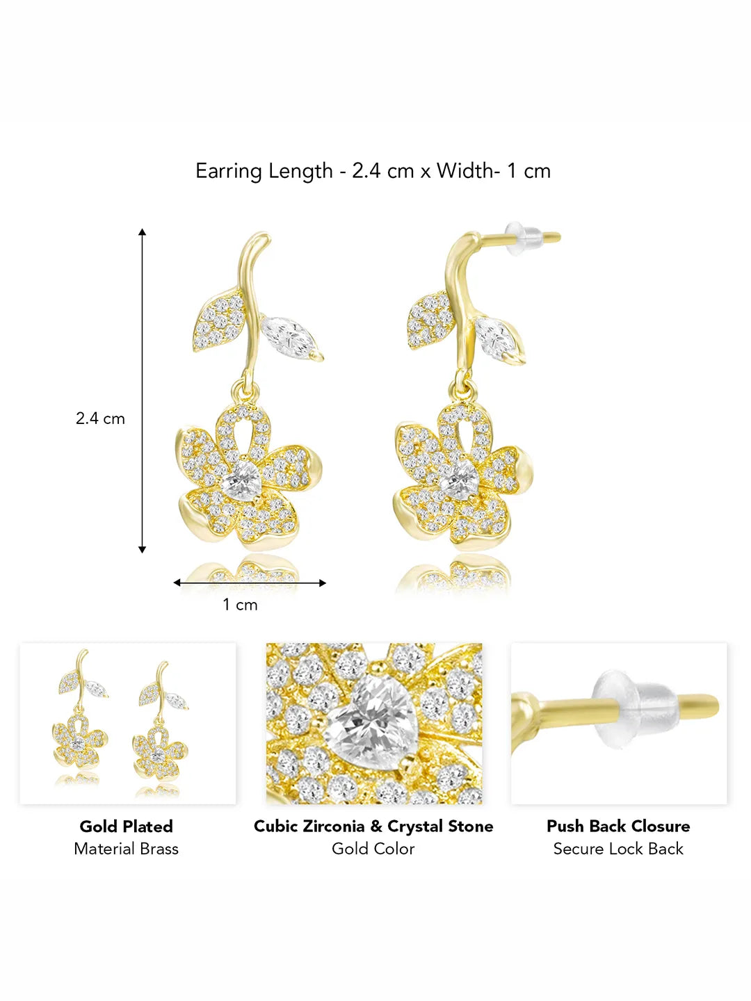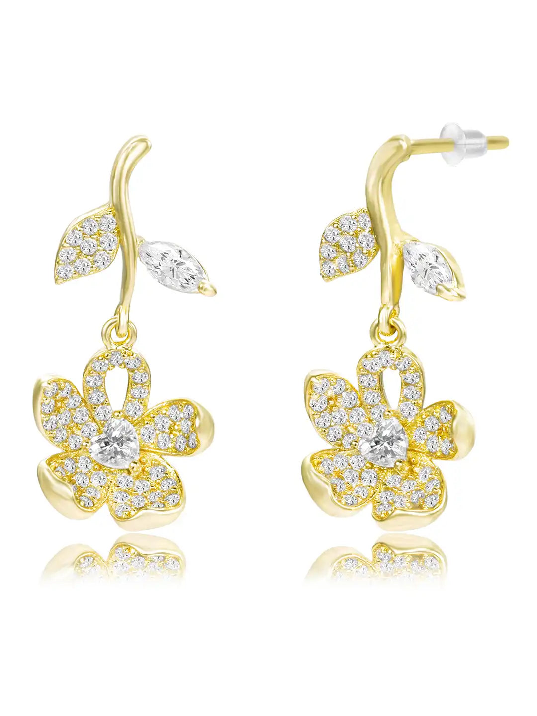 Product Name: Elegant Gold-Plated CZ Floral Drop Earrings