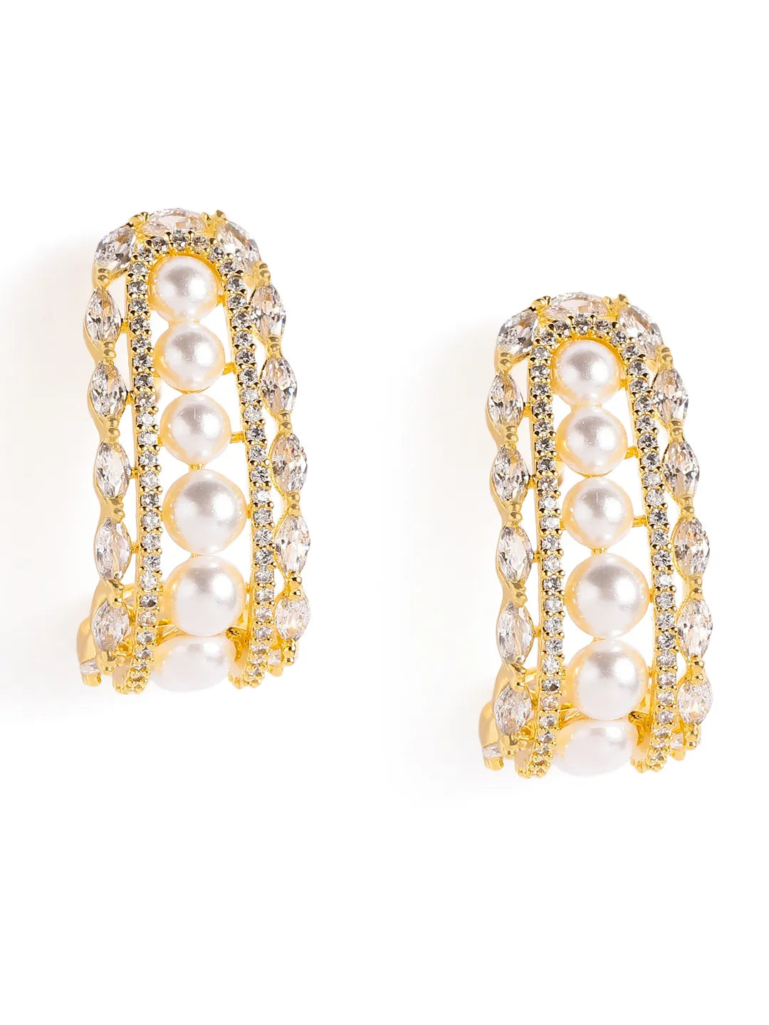 Product Name: Elegant Pearl-Studded Hoop Earrings - Gold