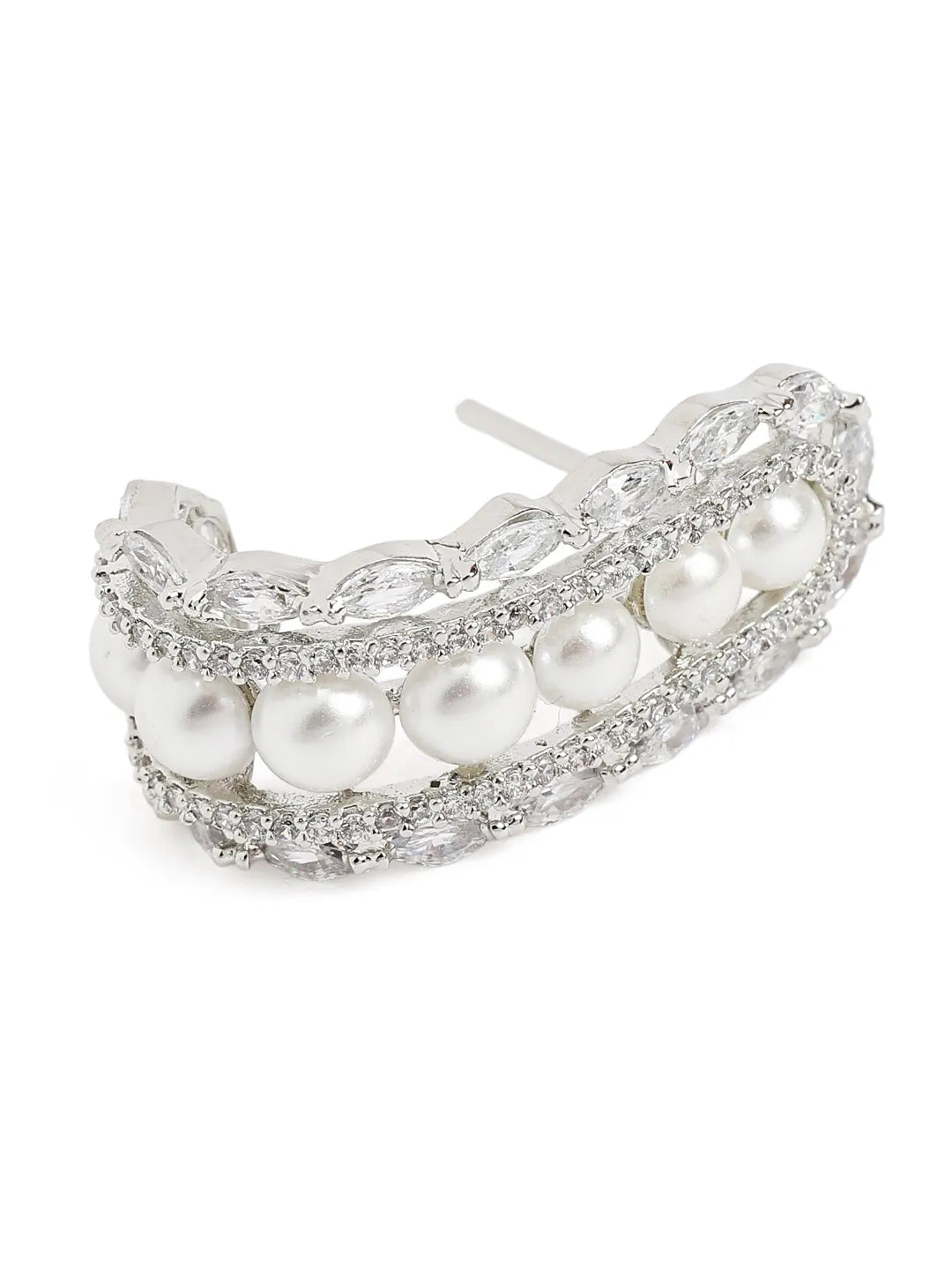 Product Name: Elegant Pearl-Studded Hoop Earrings - Silver