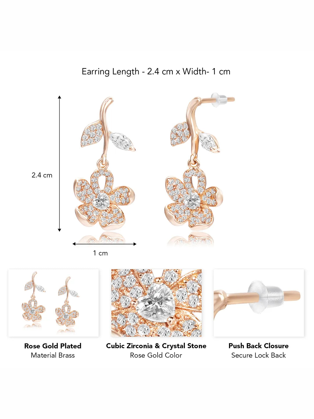 Product Name: Elegant Rose Gold CZ Floral Drop Earrings