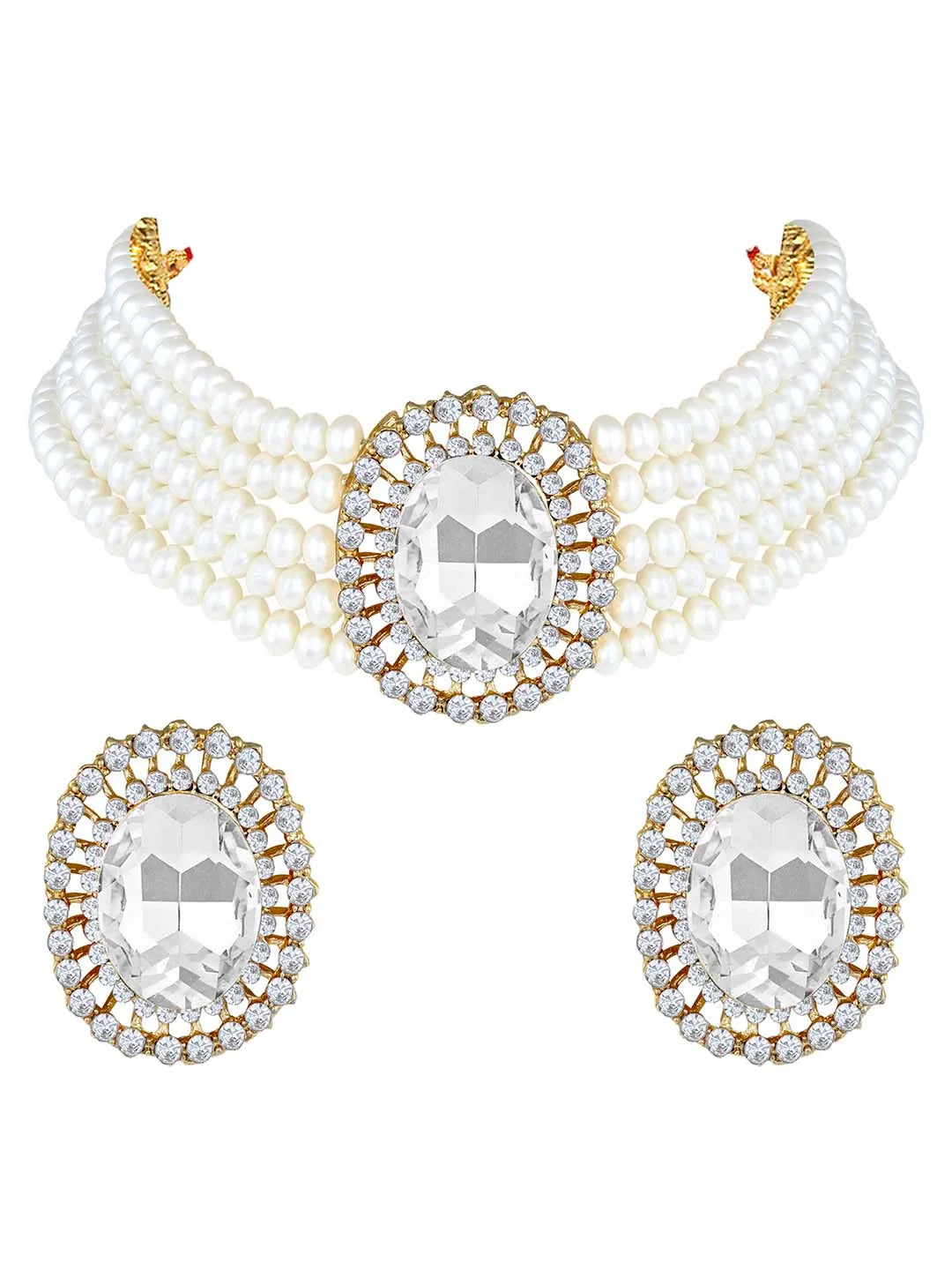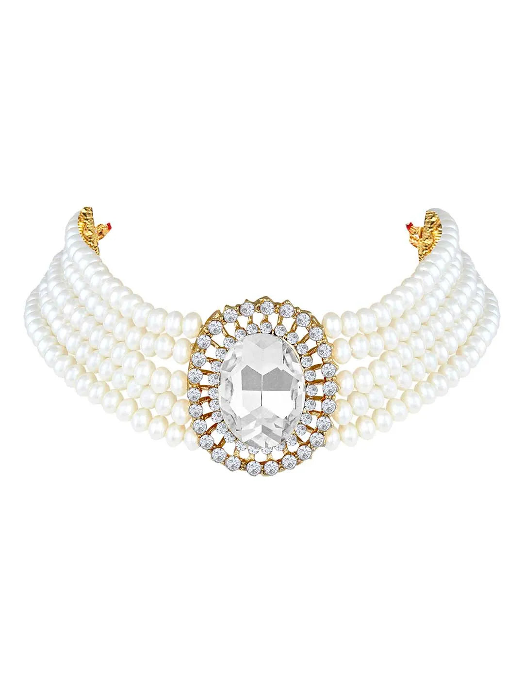 Product Name: Elegant Stone & Pearl Choker Set - White
