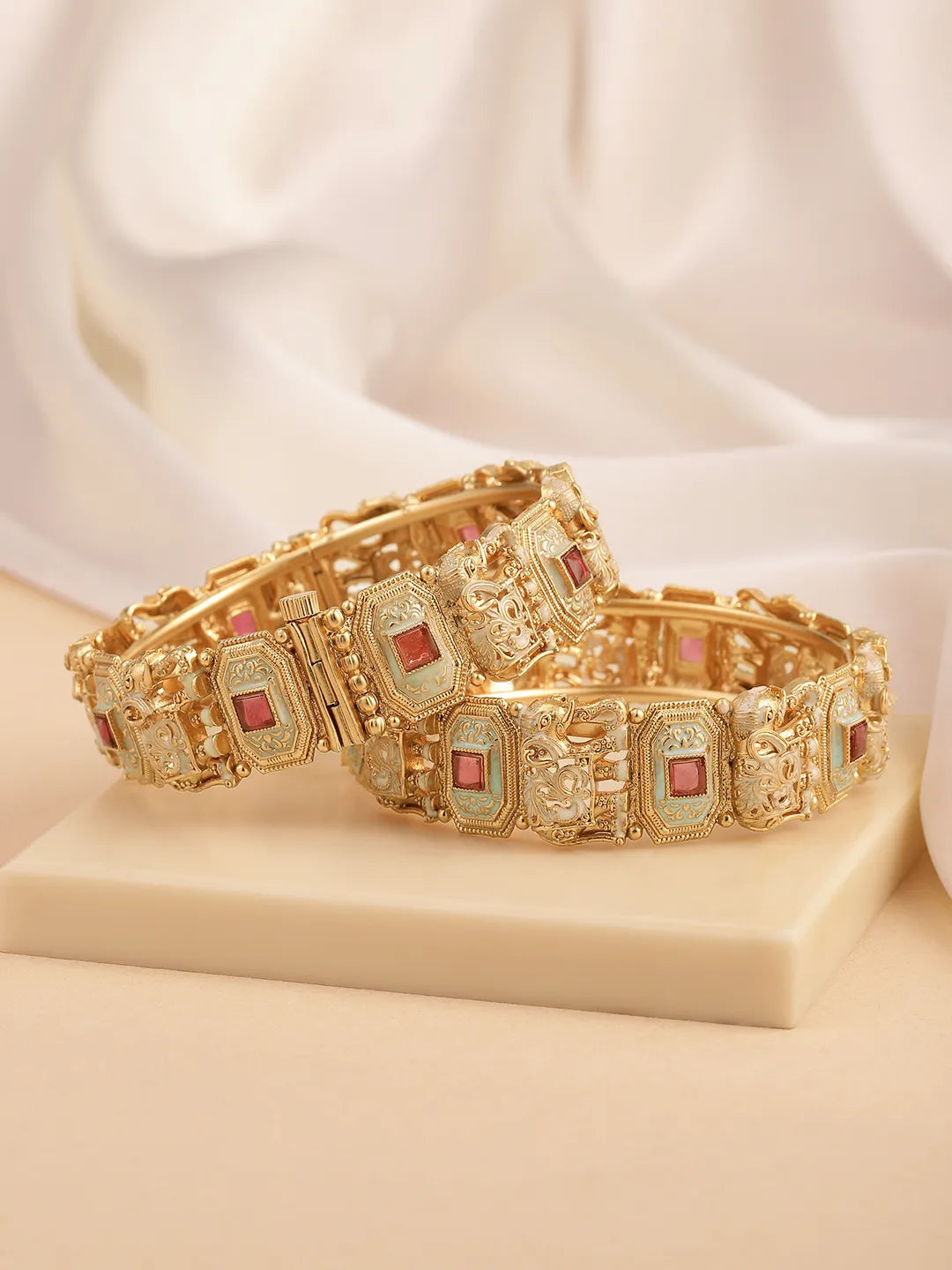 Product Name: Elephant Motif Openable Kada Set - Gold