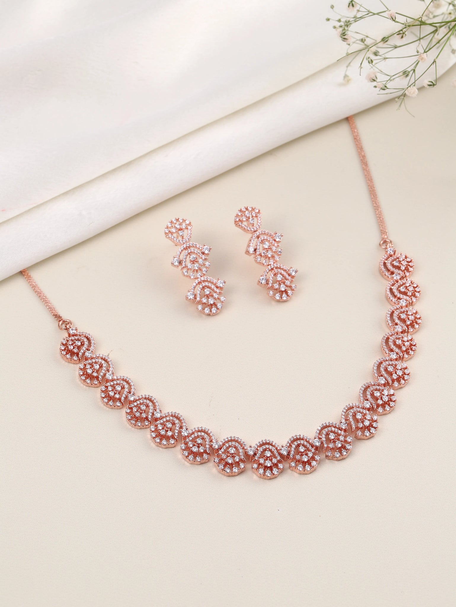 Product Name: Embrace Luxe CZ Necklace Earrings Set - Rose Gold
