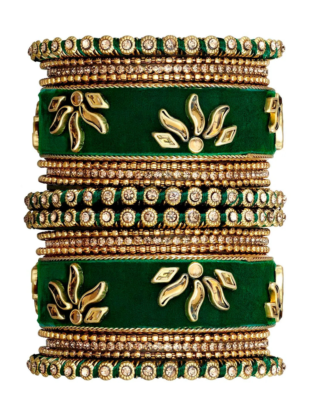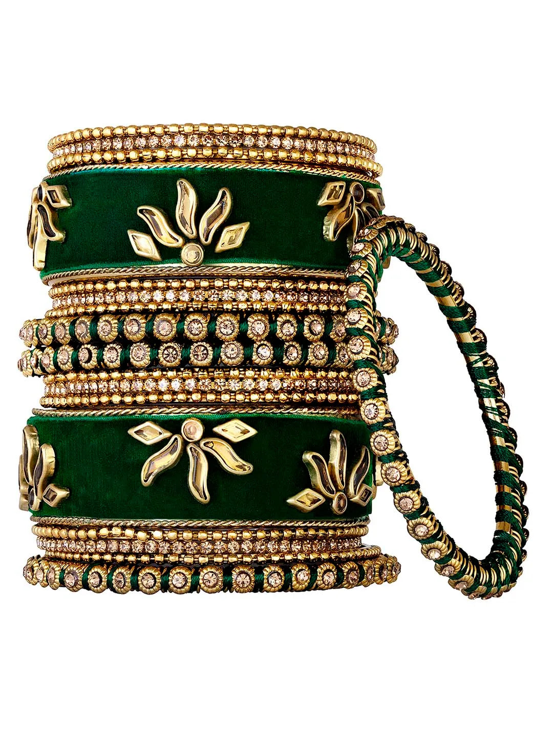 Product Name: Emerald Charms Silk Threaded Bangles - Green