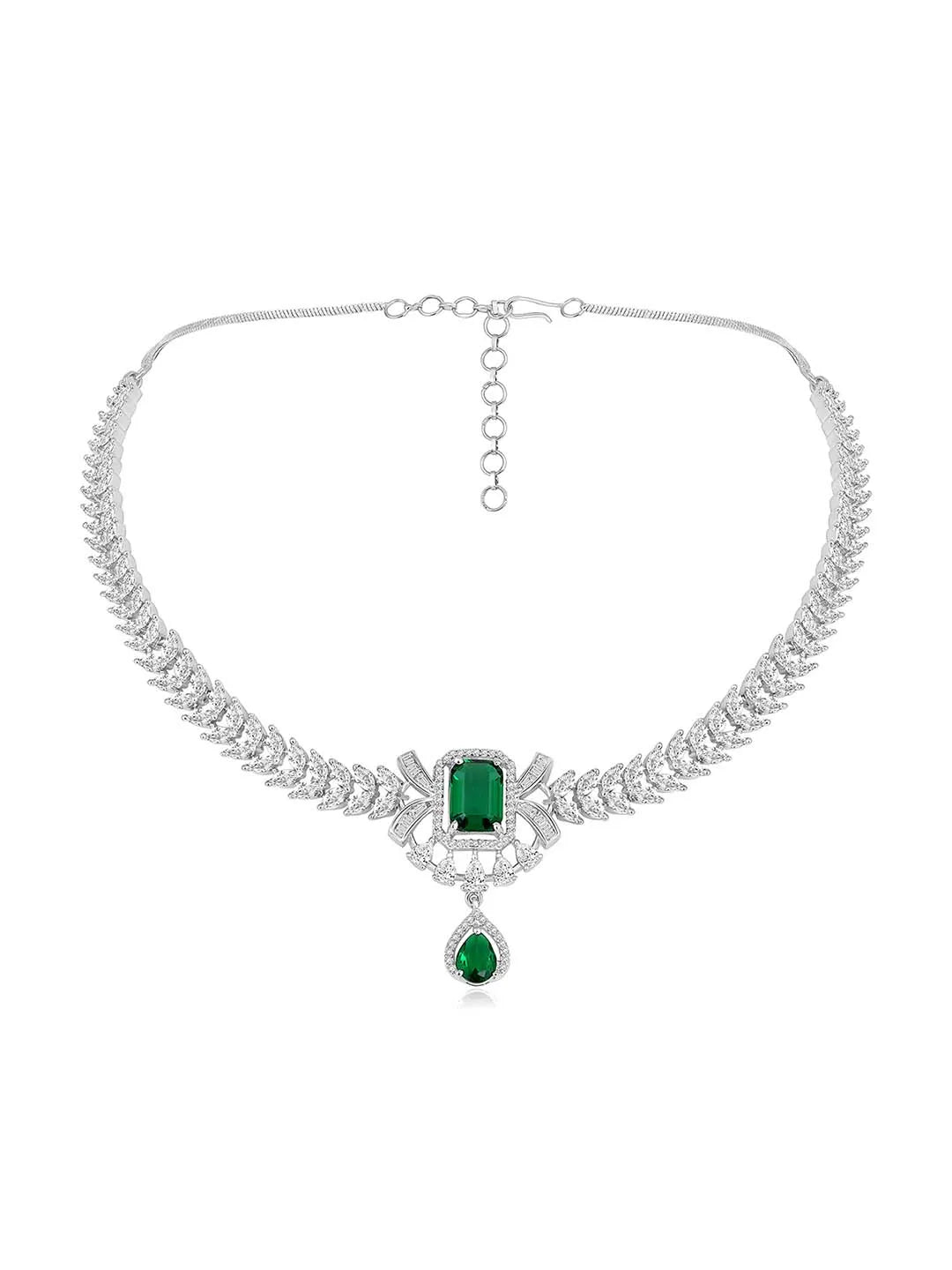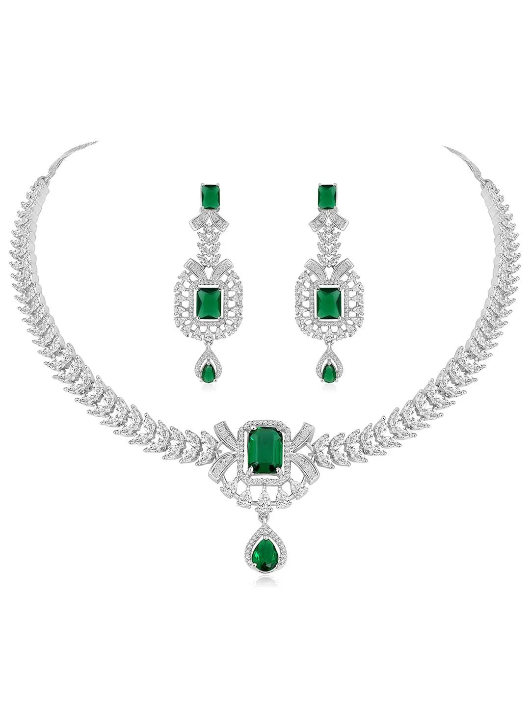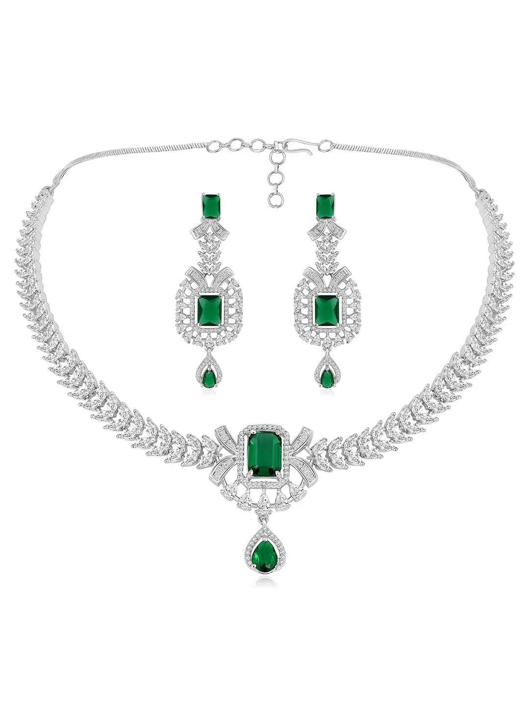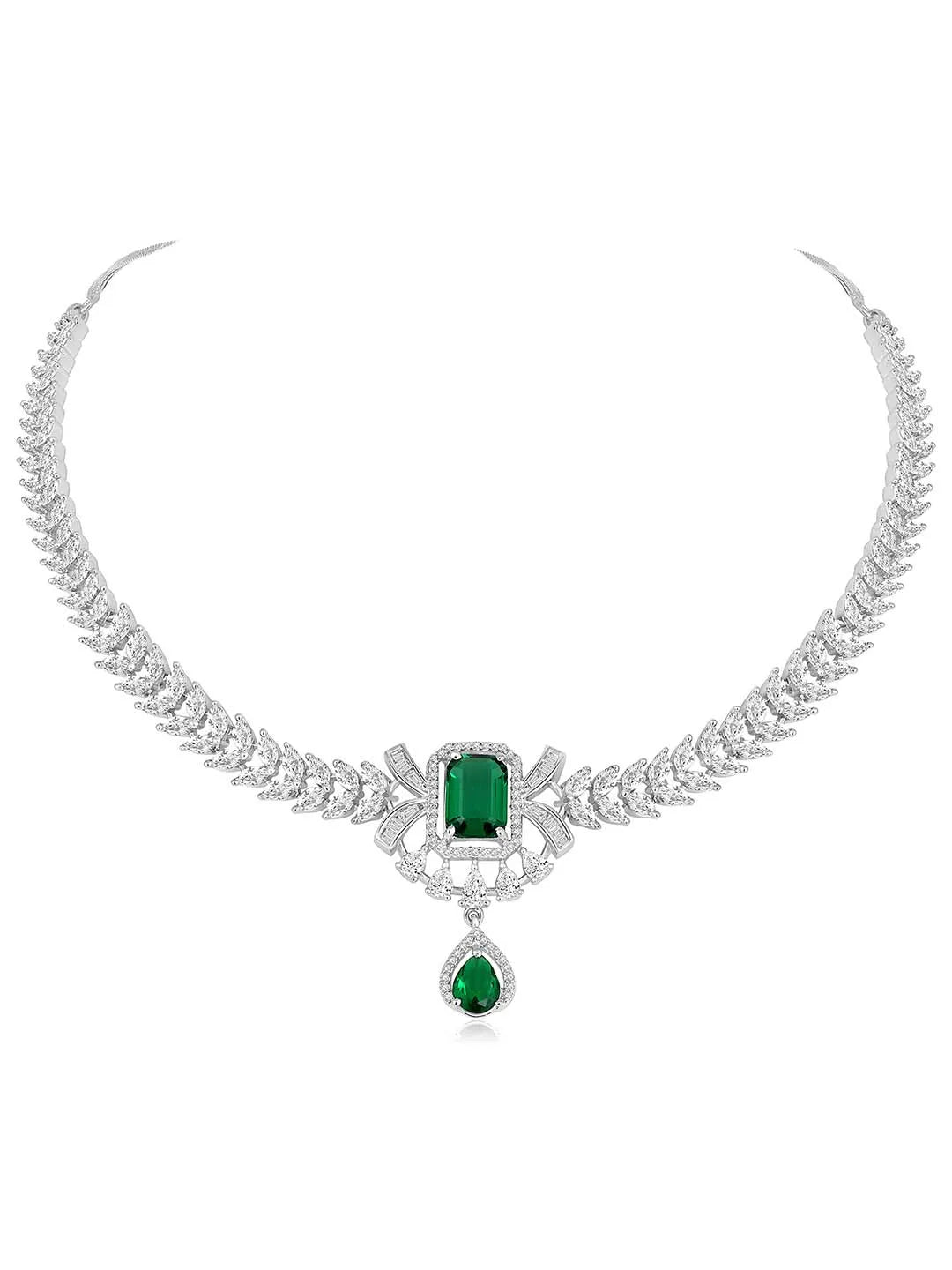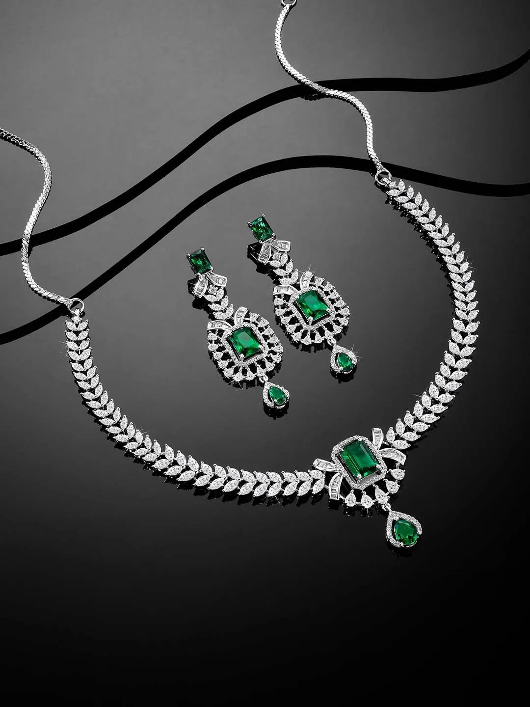 Product Name: Emerald Leaf Motif CZ Necklace Set