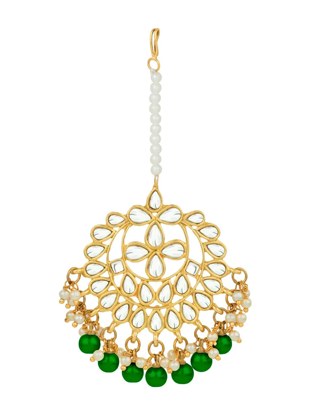 Dimensions: Long Necklace Length: 40 cm Width: 5 cm Short Necklace Length - 21 cm Width: 3.4 cm Earrings Length: 9.3 cm Width: 4.6 cm Maangtikka Length: 13 cm Width: 4.6 cm