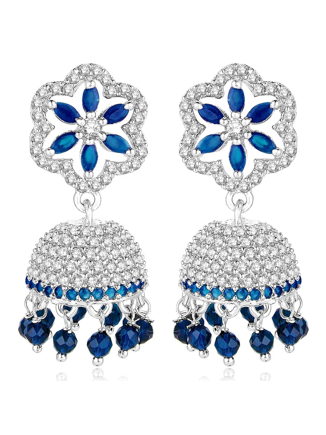 Product Name: Enchanted Grove CZ Jhumki - Silver Blue