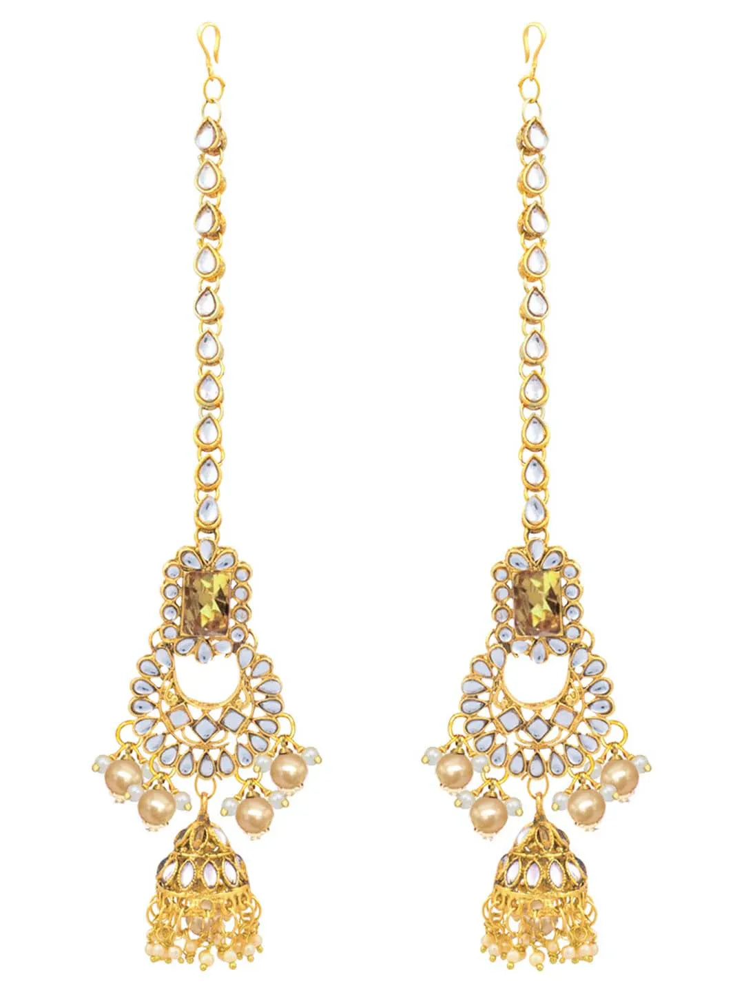 In the Box: 1 Choker 1 Long Necklace 1 Pair of Earrings 1 Matha Patti Maang tikka 1 Paso 1 Pair of Hath Panja 1 Nathiya