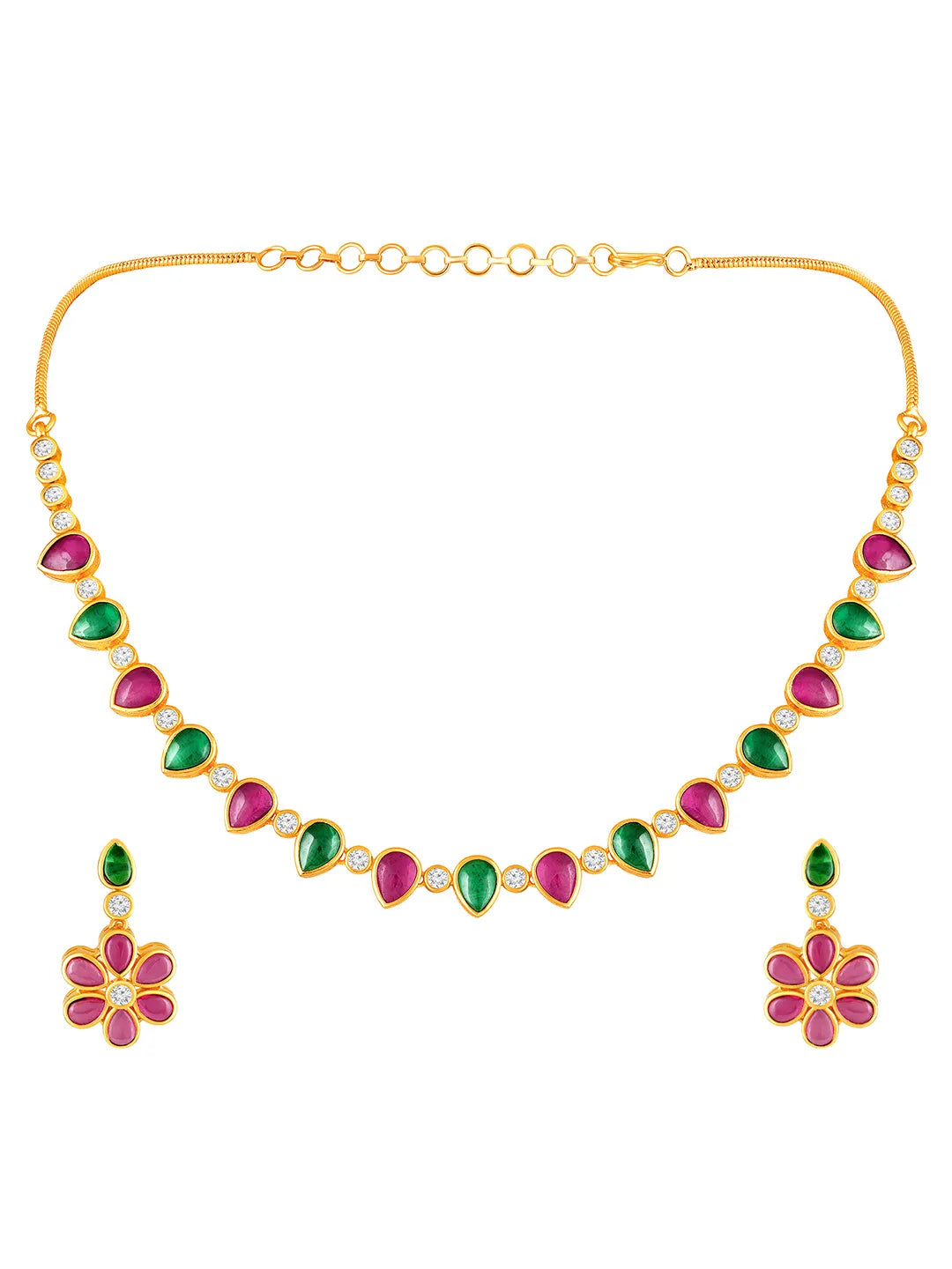 Product Name: Ethnic Petal Ruby Emerald Drape Set - Rani Pink Green