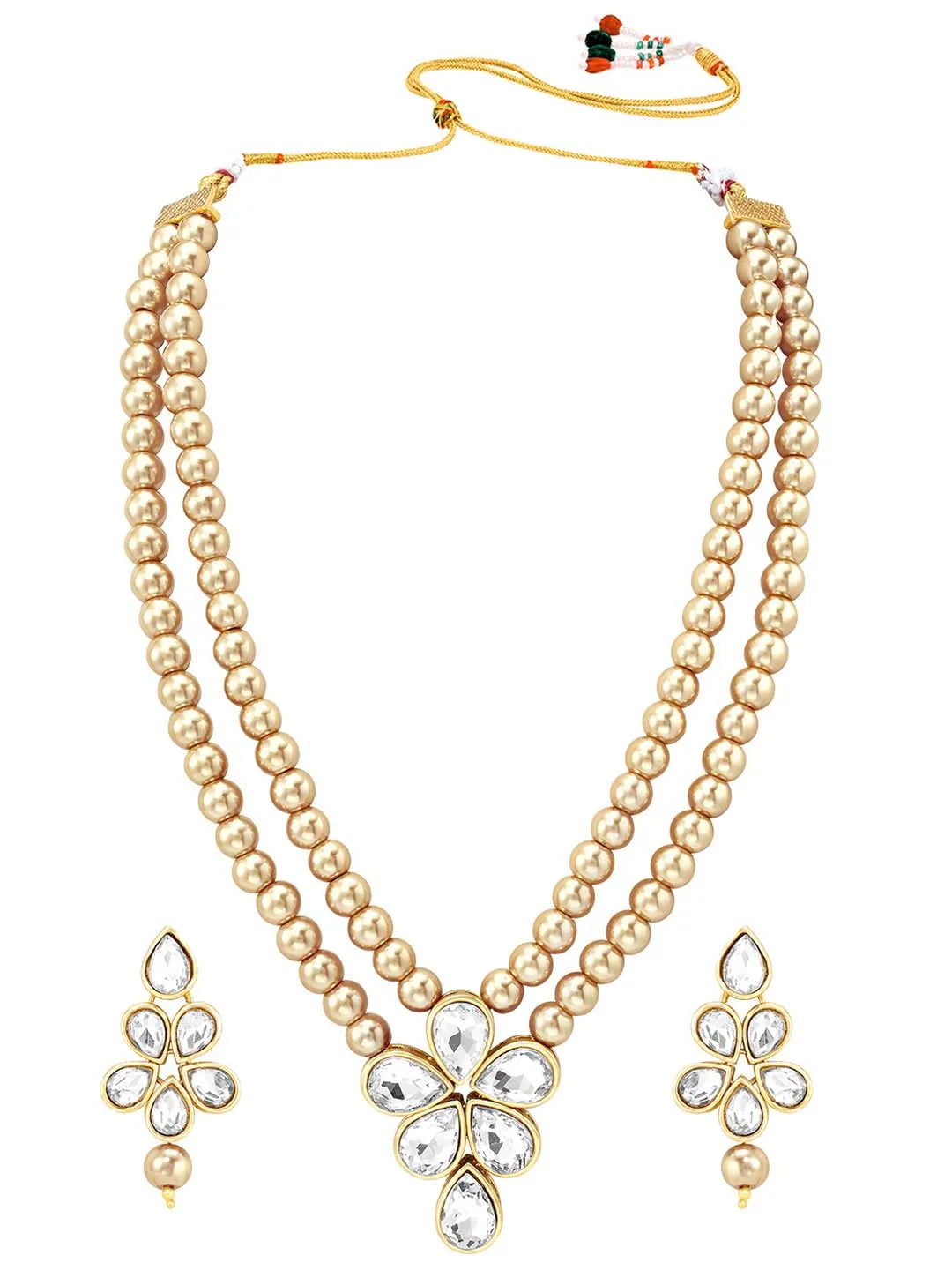 Product Name: Ethnic Radiance Beaded Necklace Set - Champagne