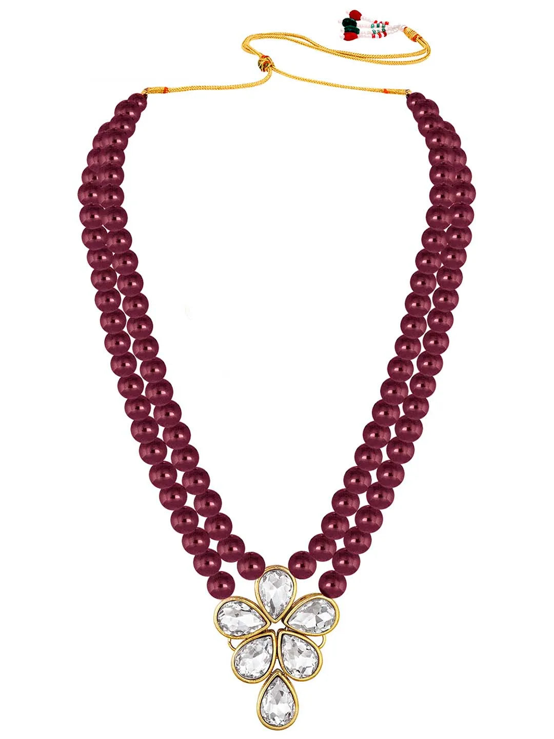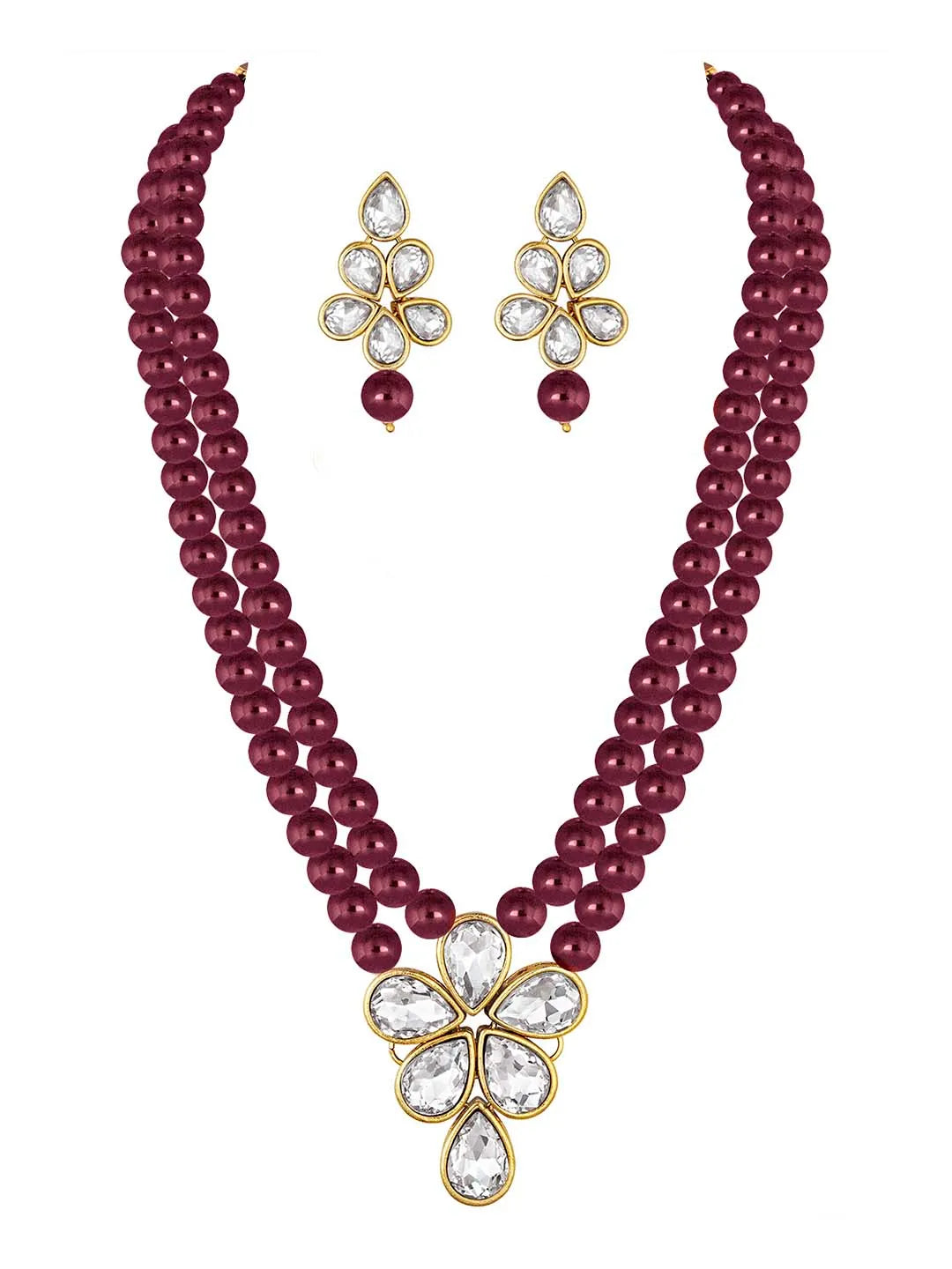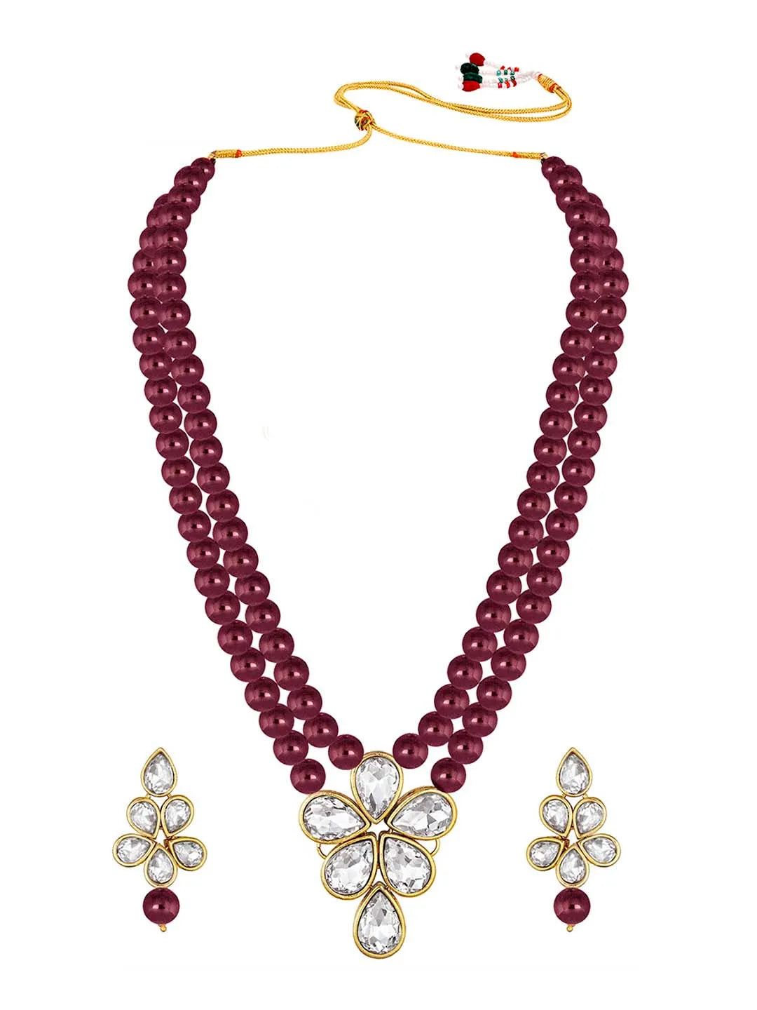 Product Name: Ethnic Radiance Beaded Necklace Set - Maroon