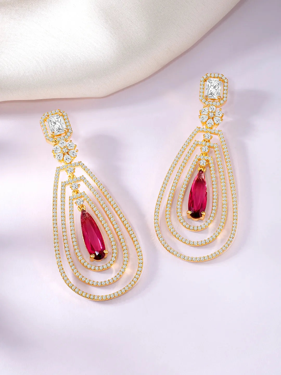 Product Name: Exquisite CZ & Crystal Drop Earrings - Gold - Rani Pink