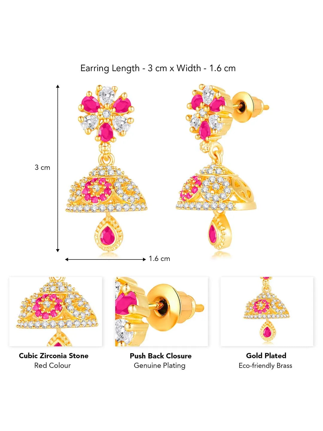 Product Name: Eye-Catching Dazzling Duo CZ Jhumki - Rani Pink