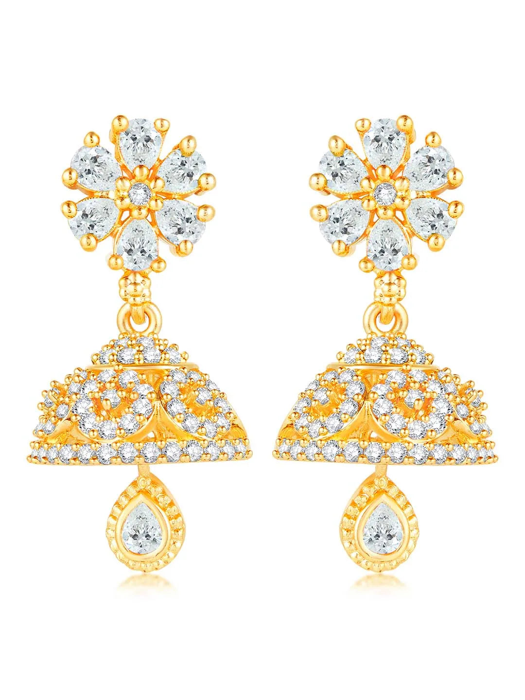 Product Name: Eye-Catching Dazzling Duo CZ Jhumki - White