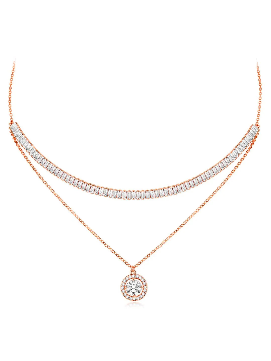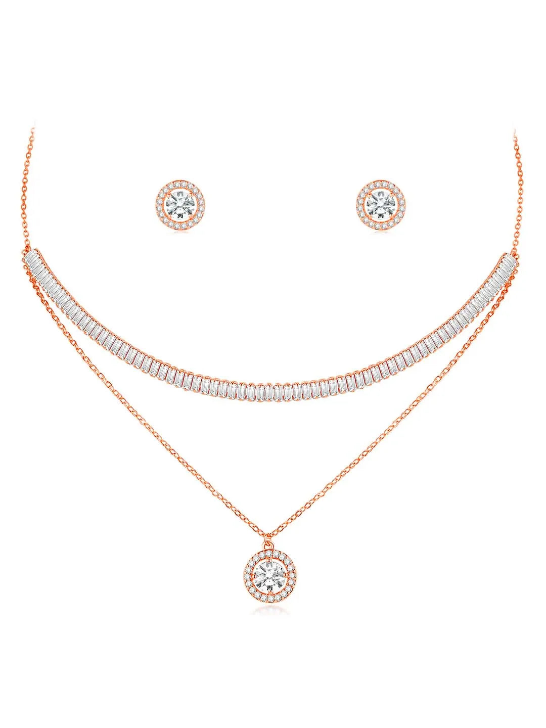 Product Name: Fashionable Two Layer Pendant Necklace Set with Matching Earrings - Rose Gold