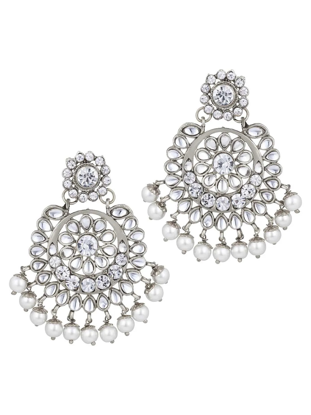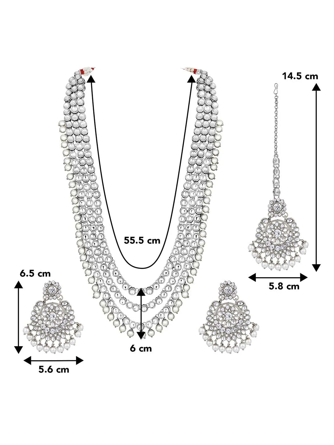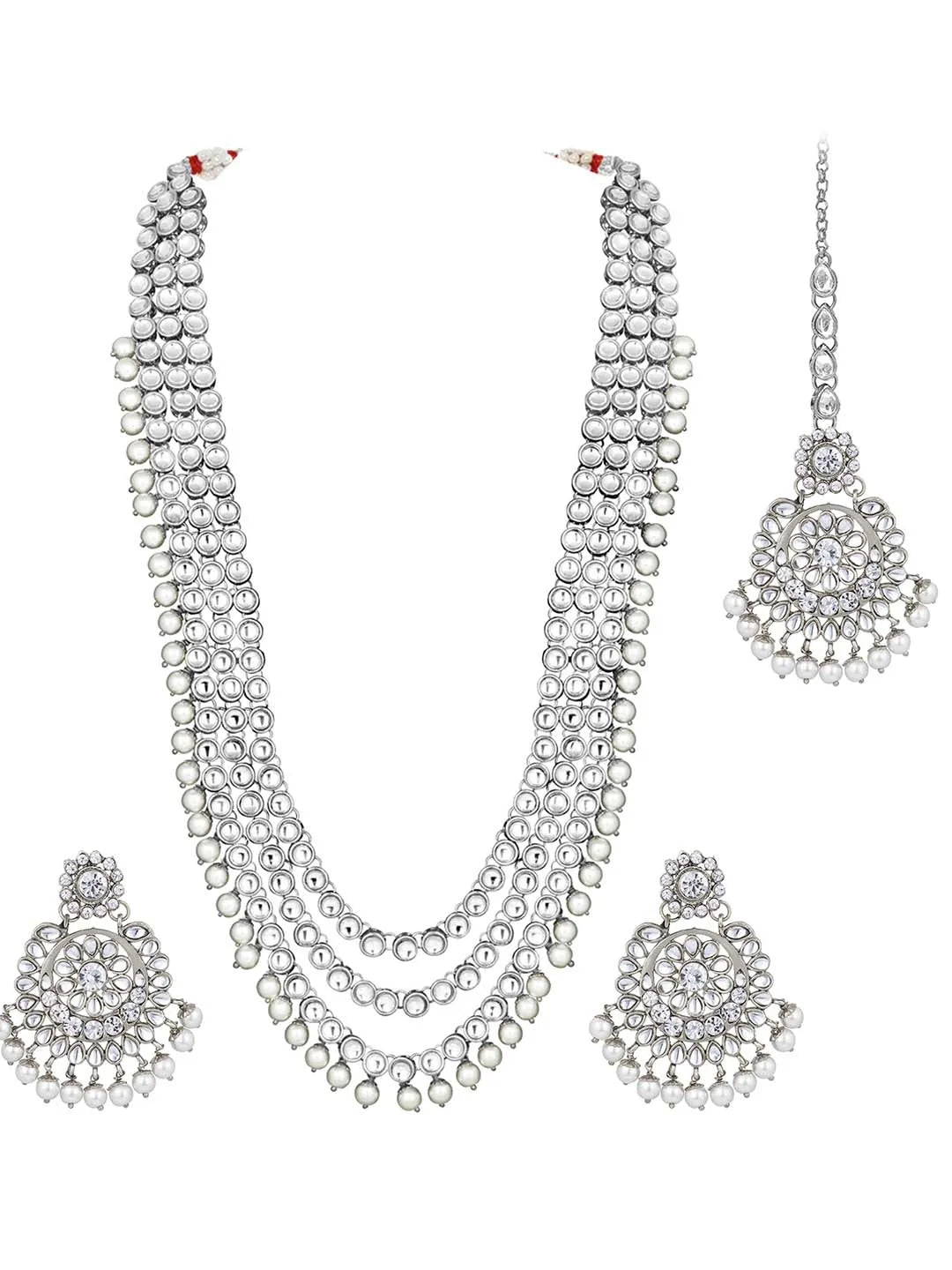 Product Name: Faux Beads Rhodium Kundan Bridal Set - Rhodium White