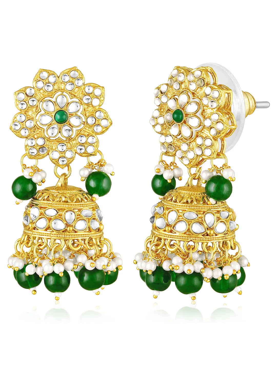 Product Name: Floral Cascade Faux Kundan Set - Green