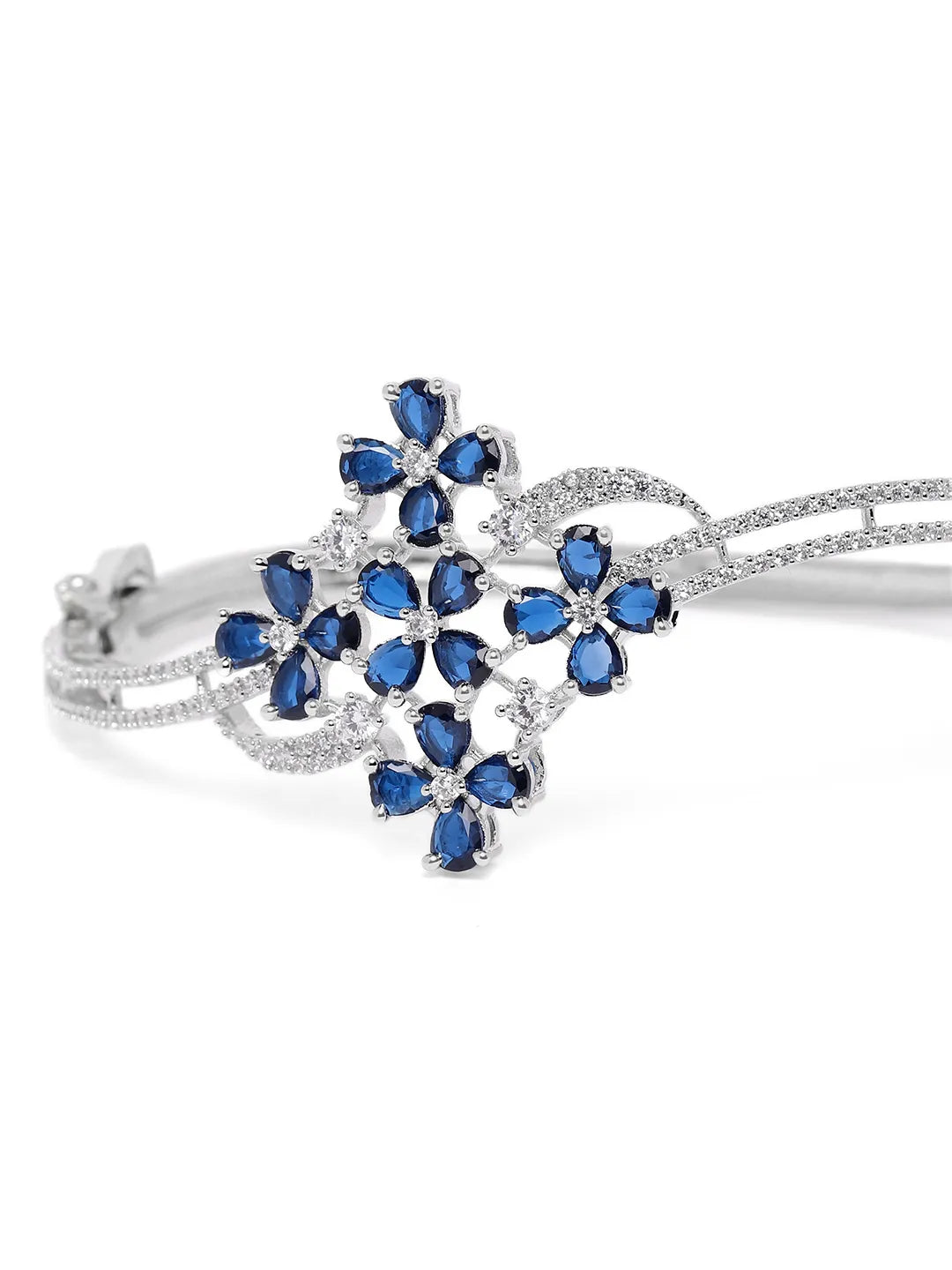 Product Name: Floral Cluster Crystal Kada for Women - Silver - Blue