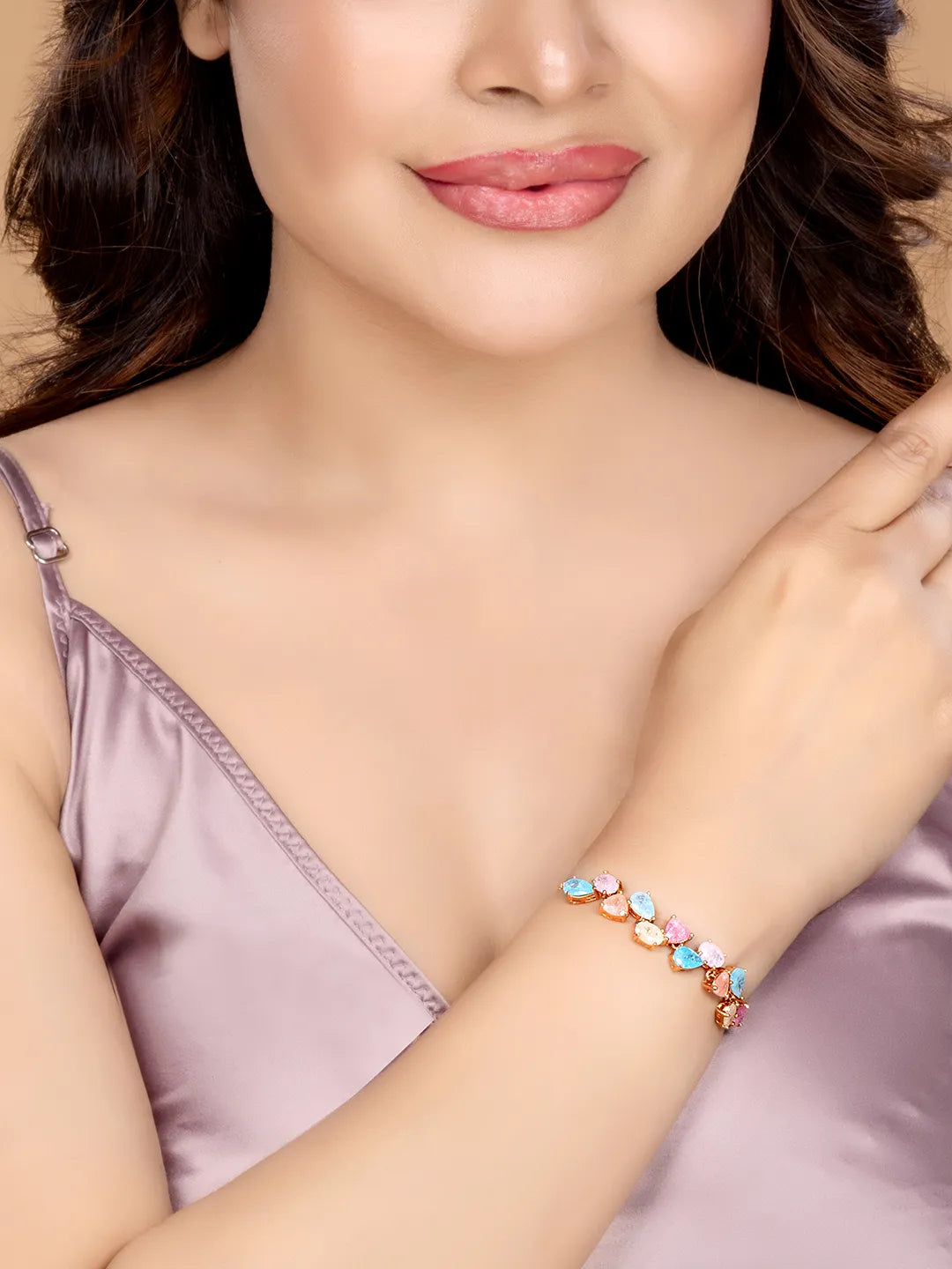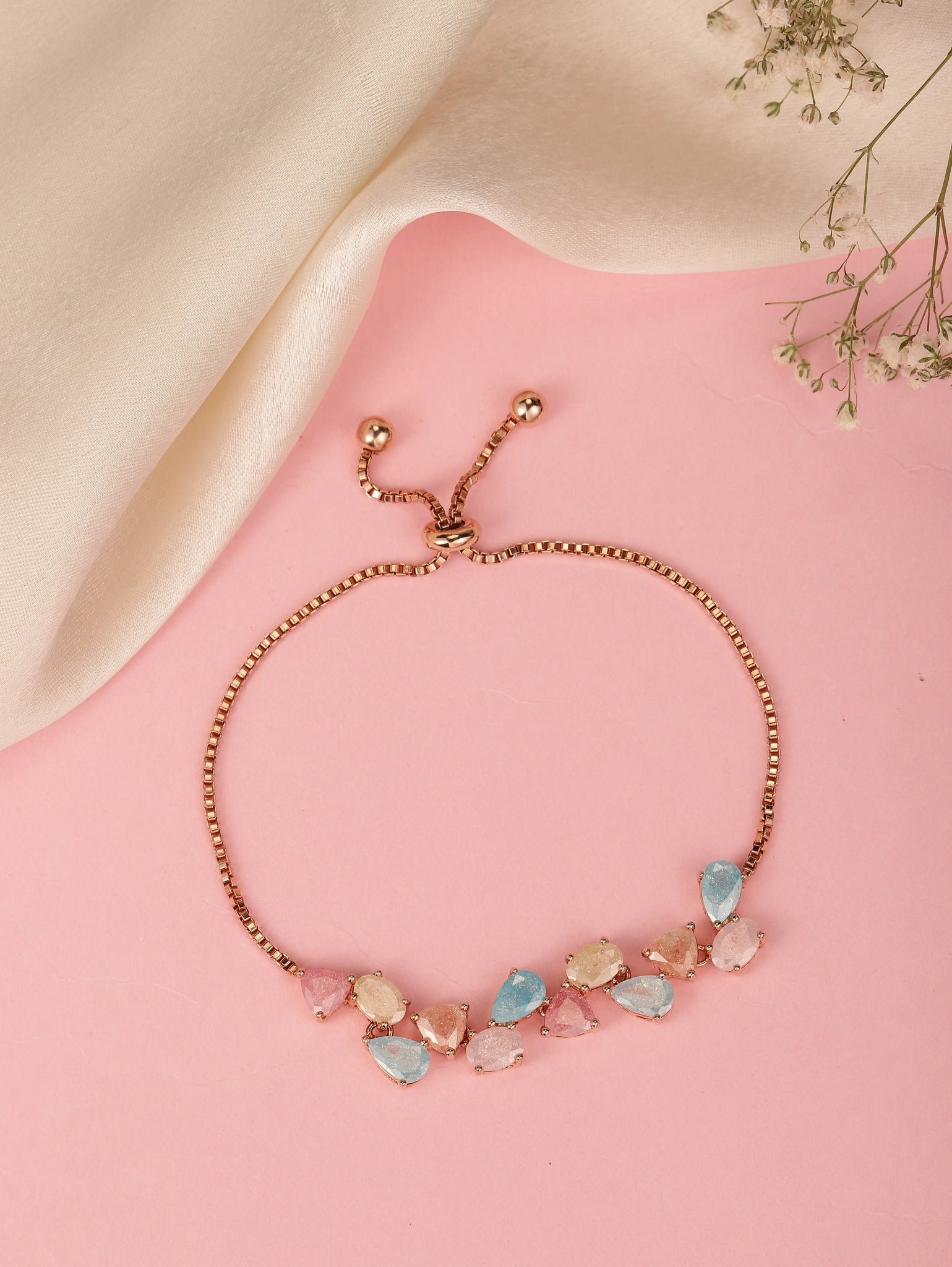 Product Name: Floral Crystal Petal Stone Chain Bracelet - Rose Gold - Multi