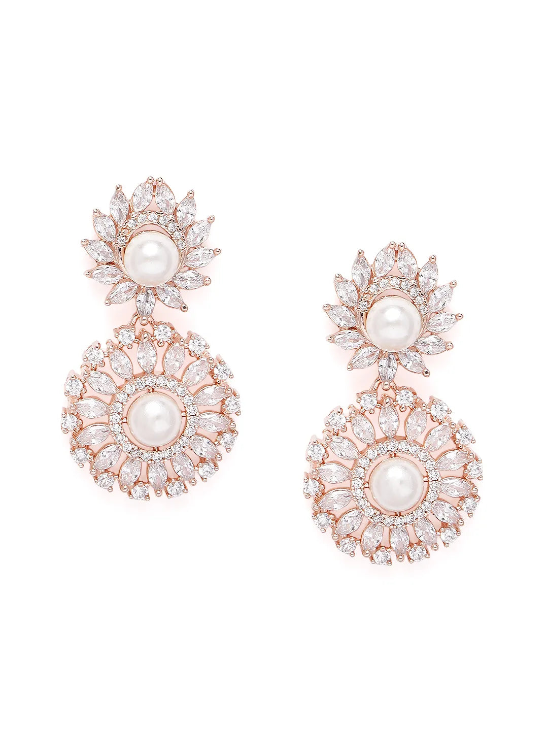 Product Name: Floral Halo CZ Pearl Necklace Set