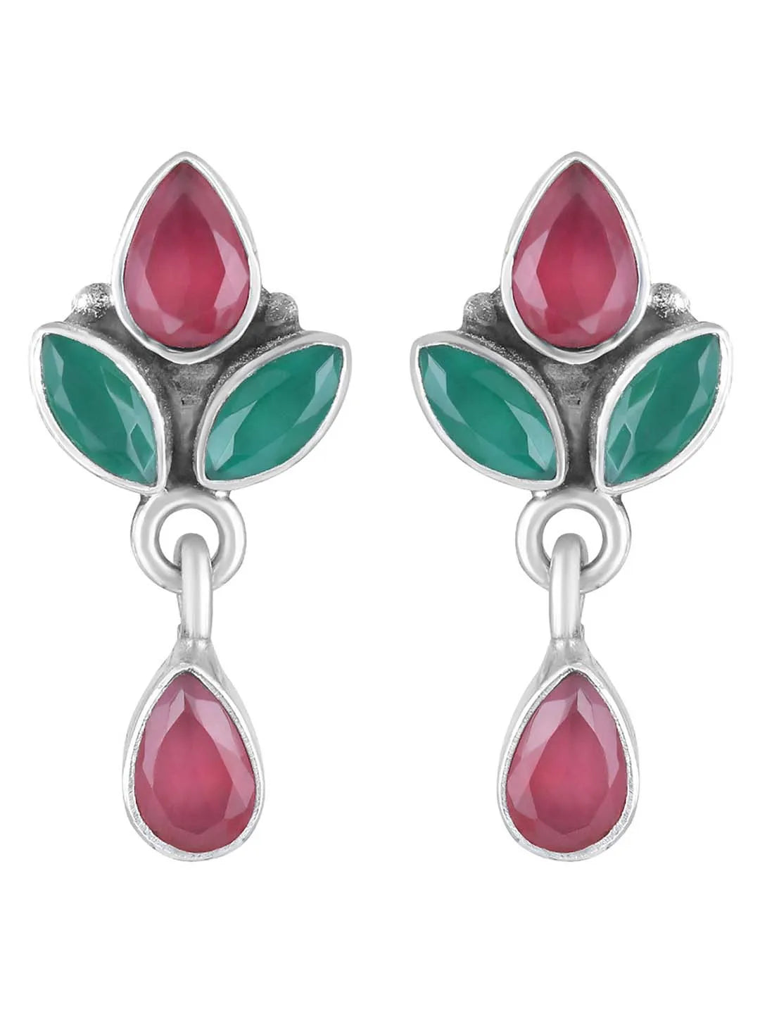 Product Name: Floral Inspired Drop Earrings - Red & Green