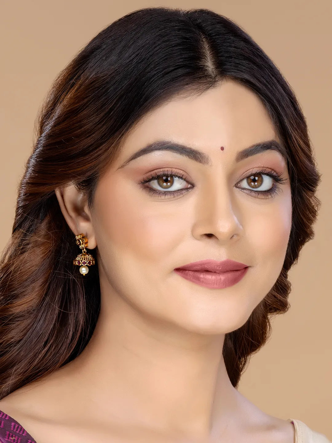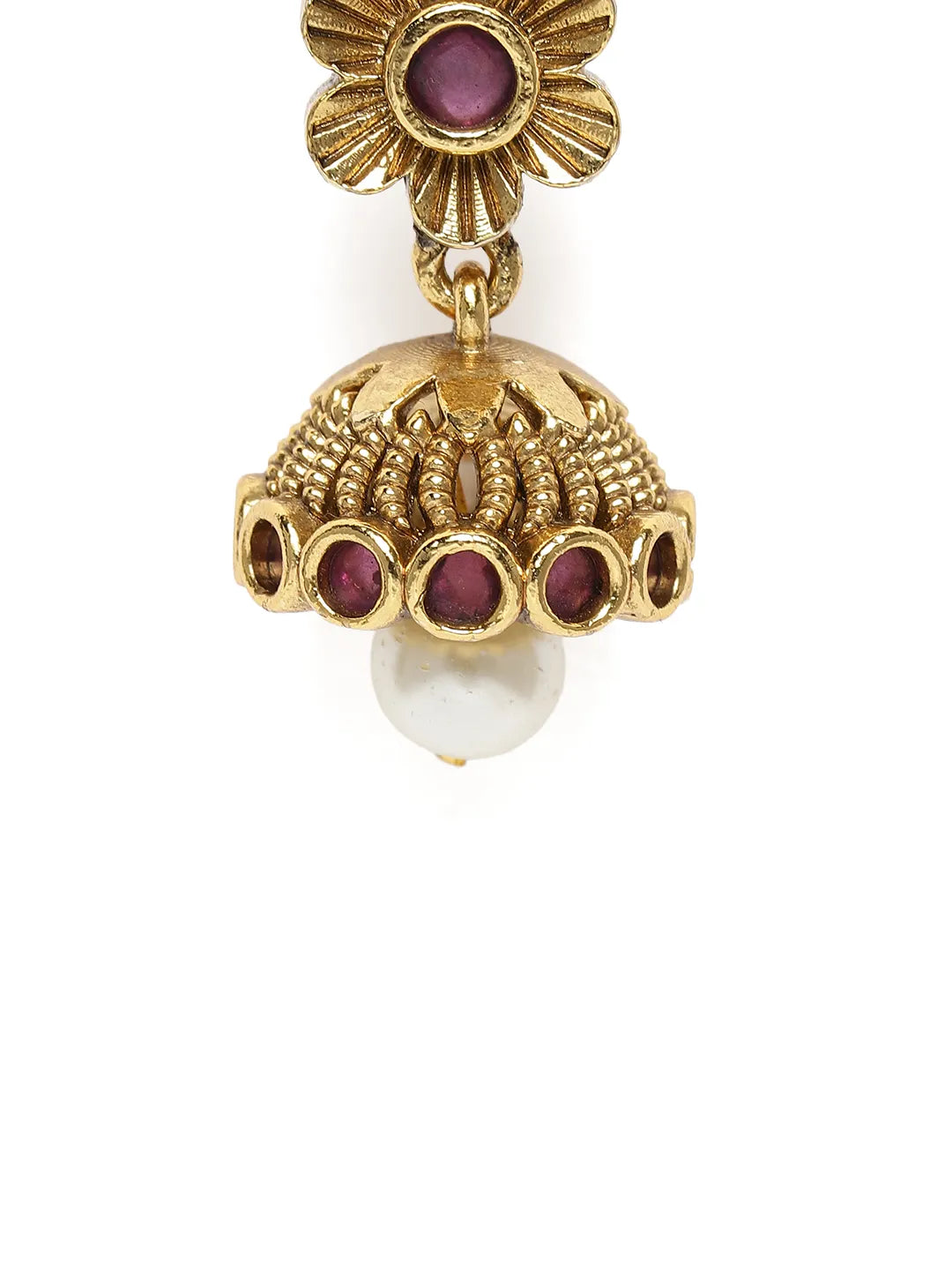 Product Name: Floral Motif Jhumka with Pearl Drop