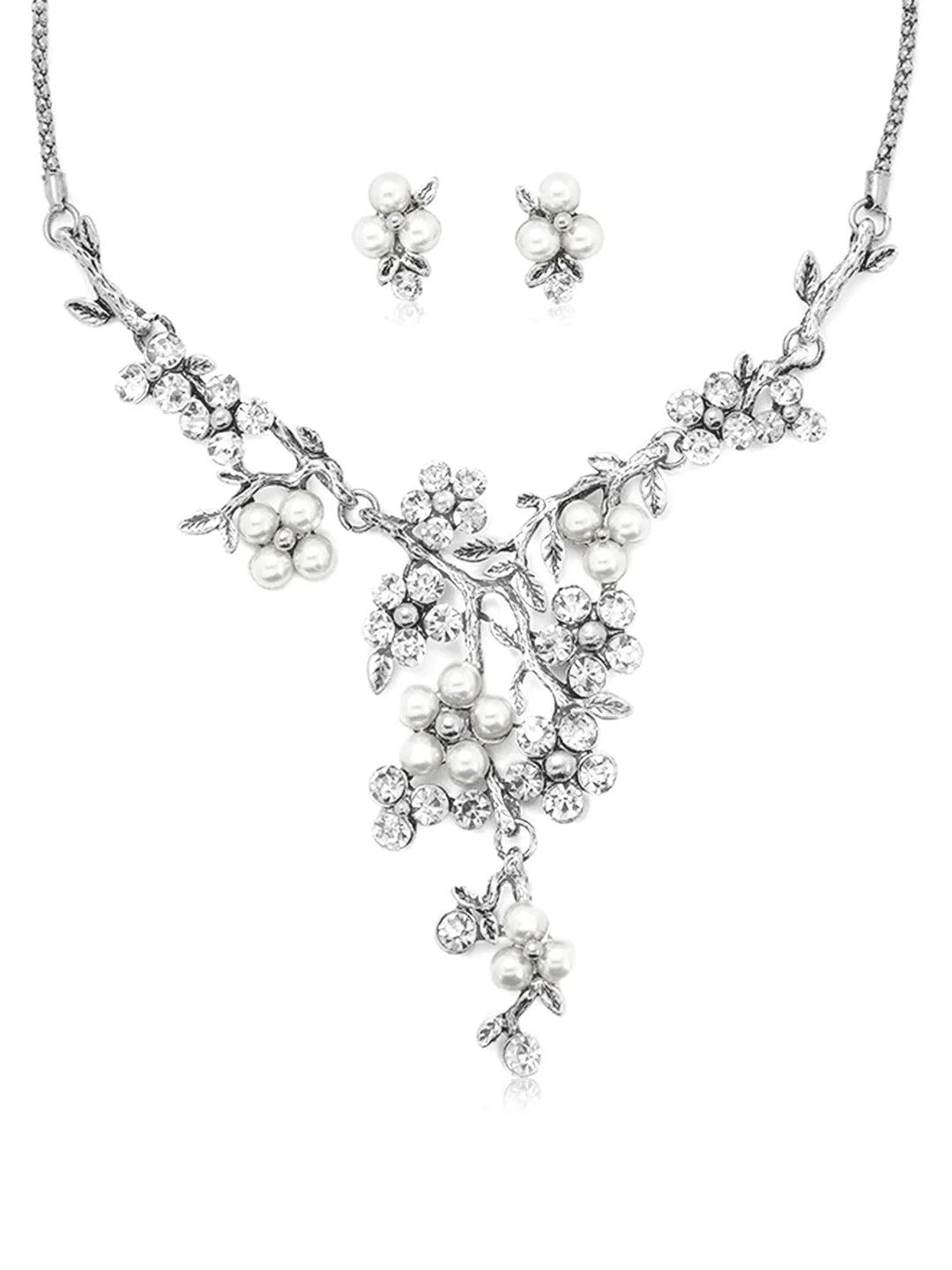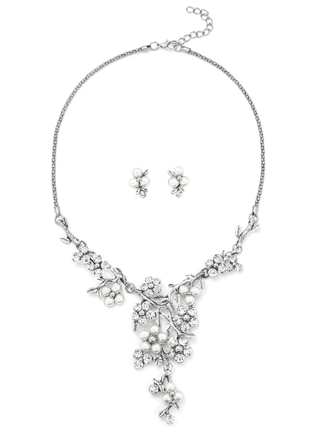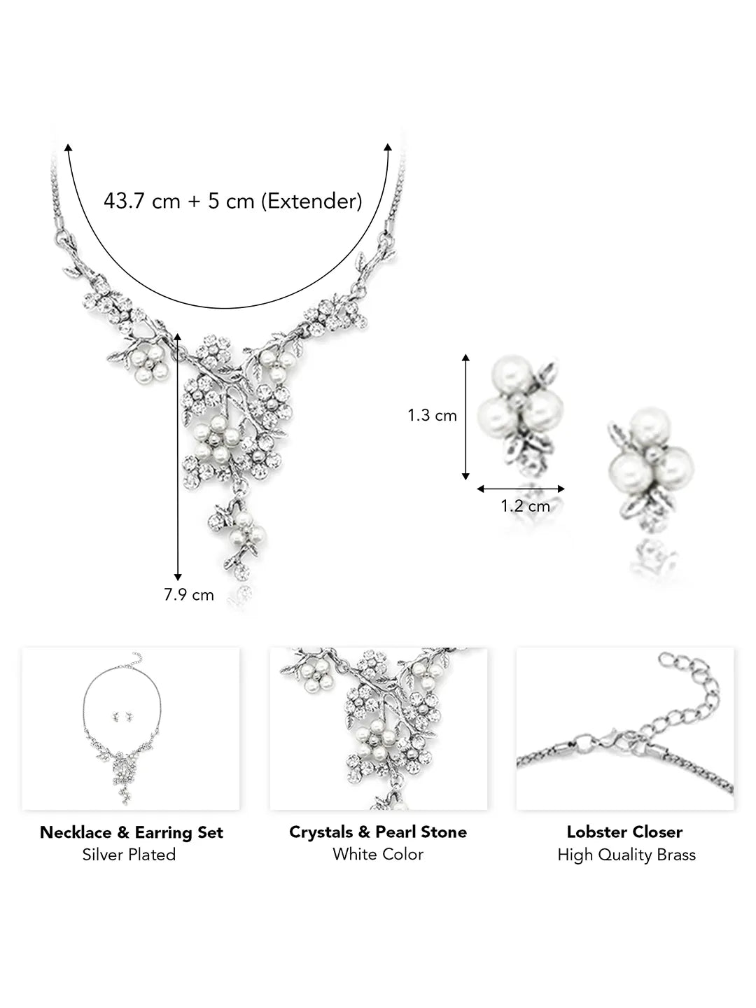 Product Name: Floral Pearl & CZ Stone Necklace Set