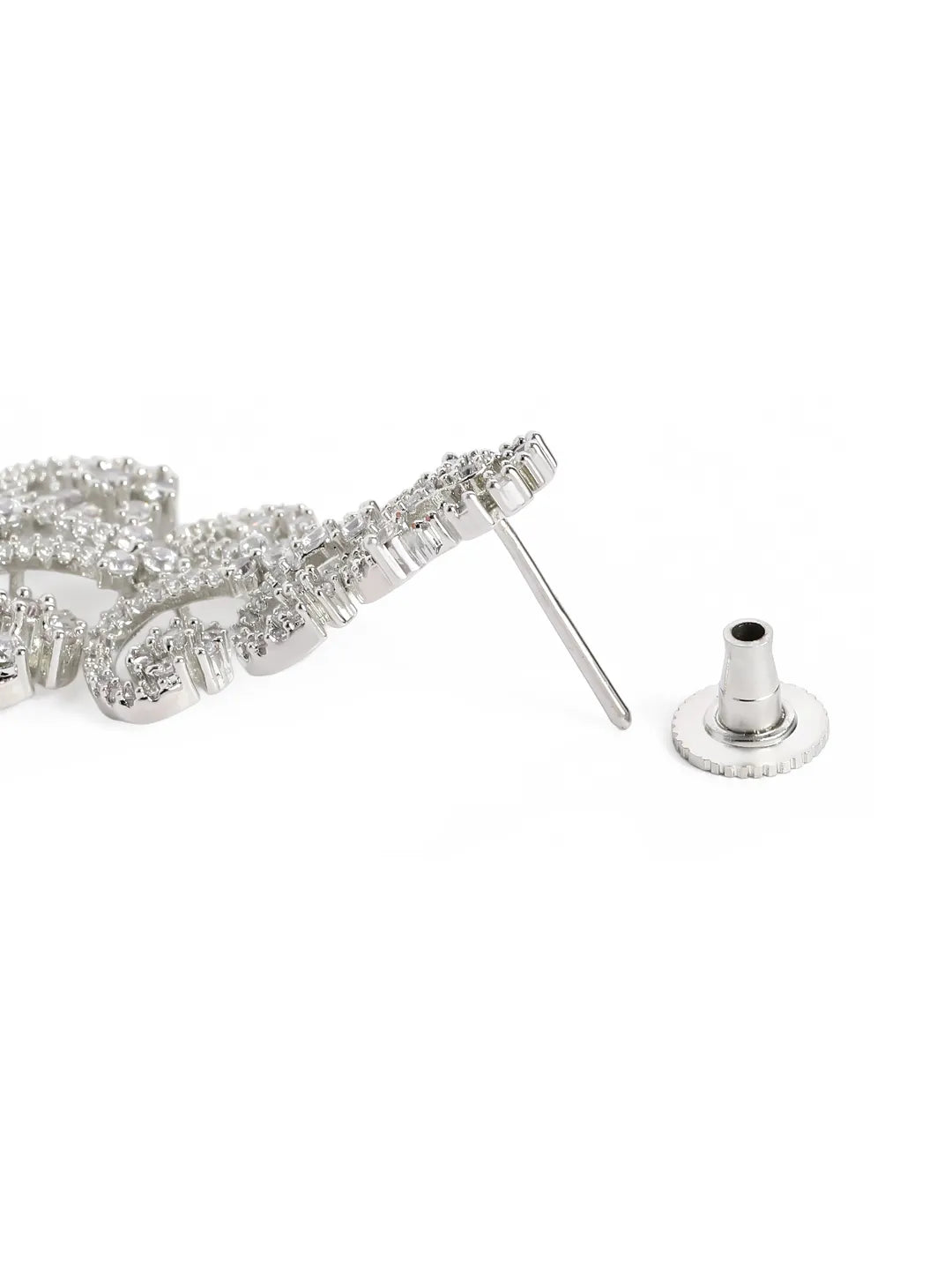 Product Name: Floral Swirl CZ Dangle Earrings - Silver