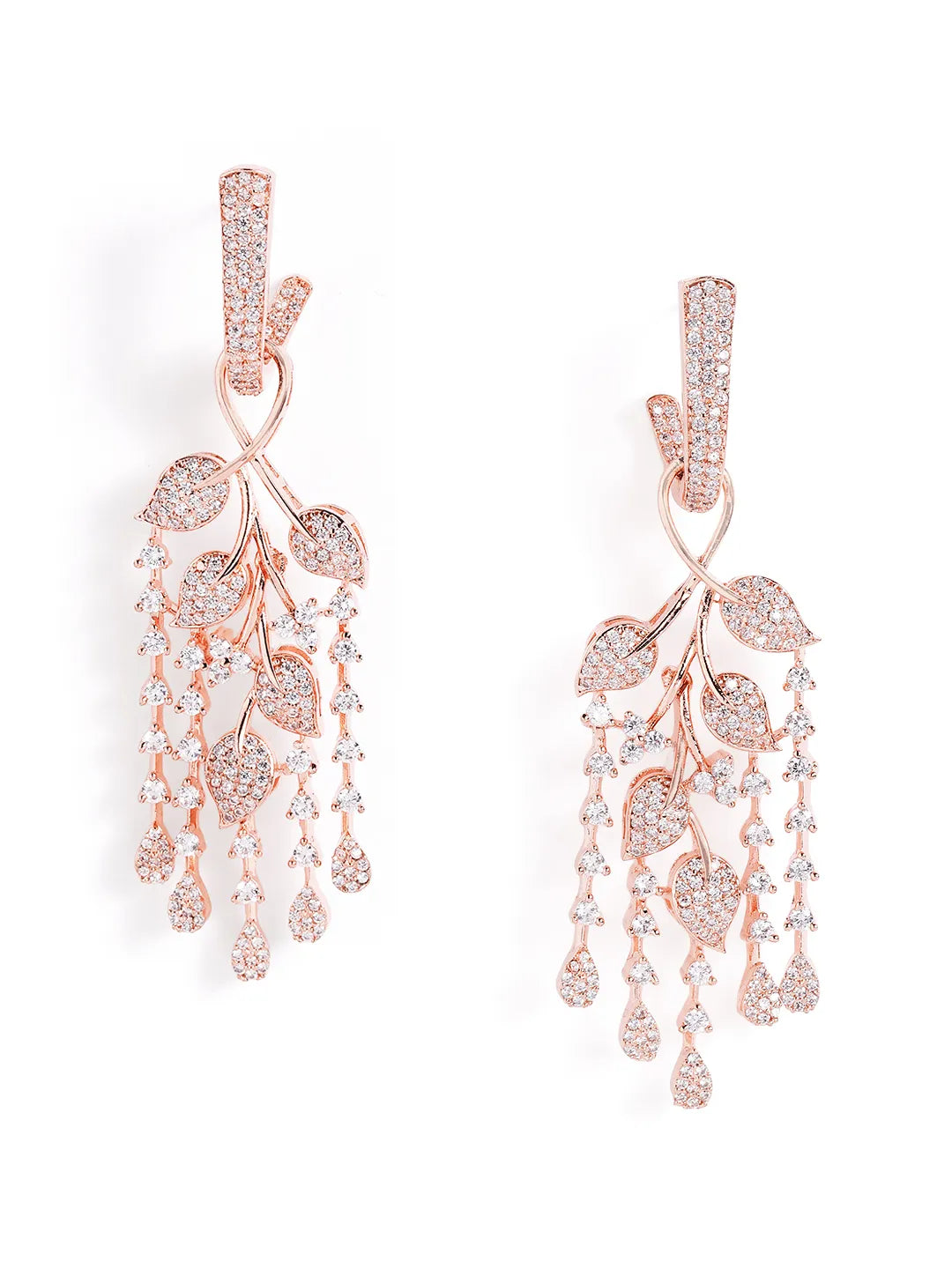 Product Name: Floral Vine CZ Dangler Earrings - Rose Gold
