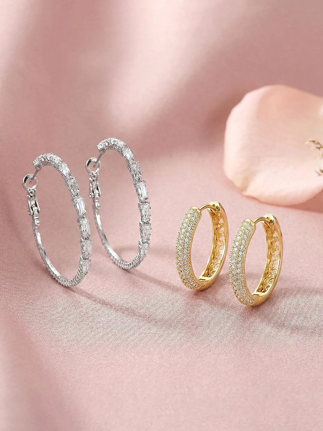 Product Name: Glam Crystal Gold & Silver Hoop Earrings Set