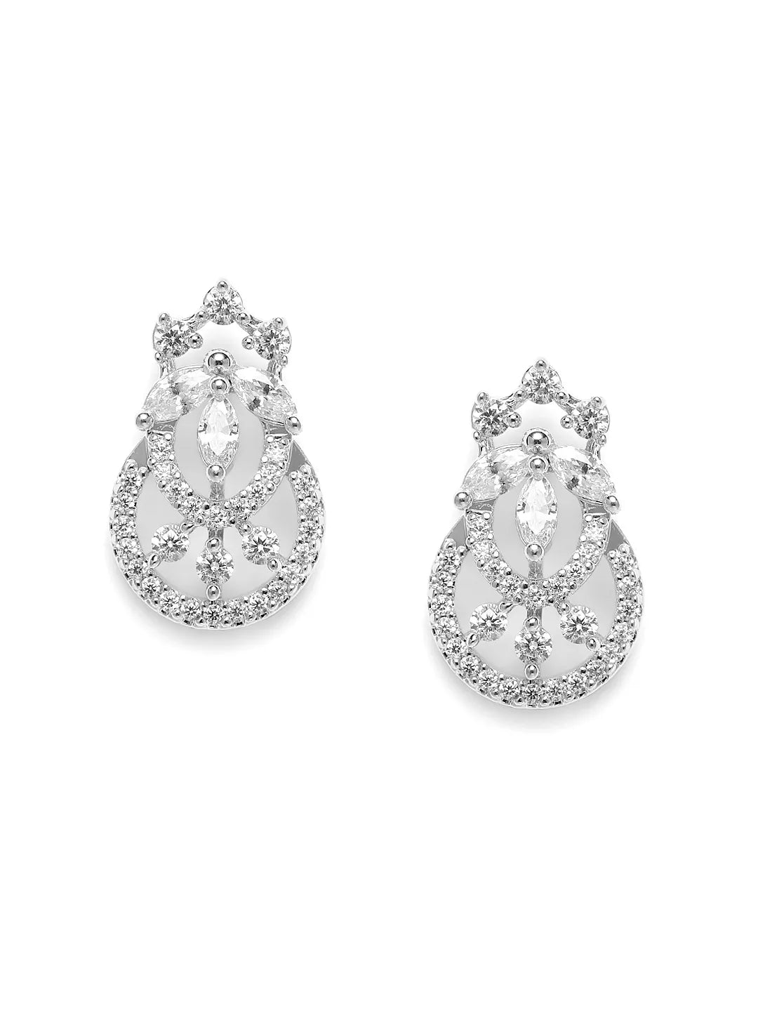 Product Name: Glam CZ Stud Earrings for Women - Silver
