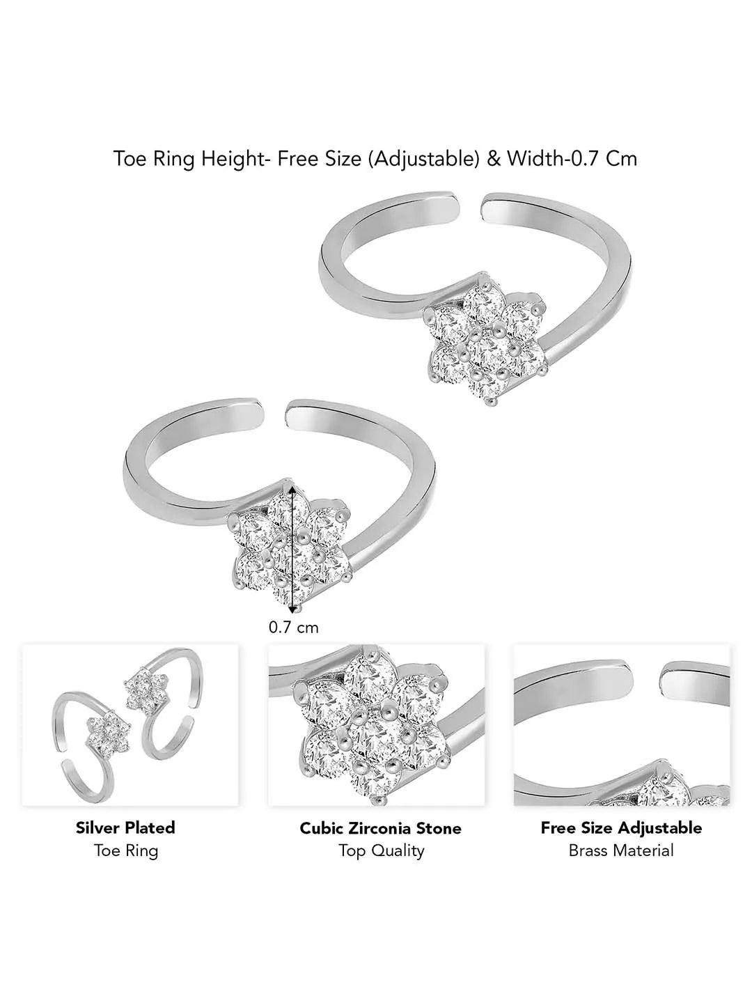 Product Name: Glam CZ Trendy Fashionable Toe Rings - Silver