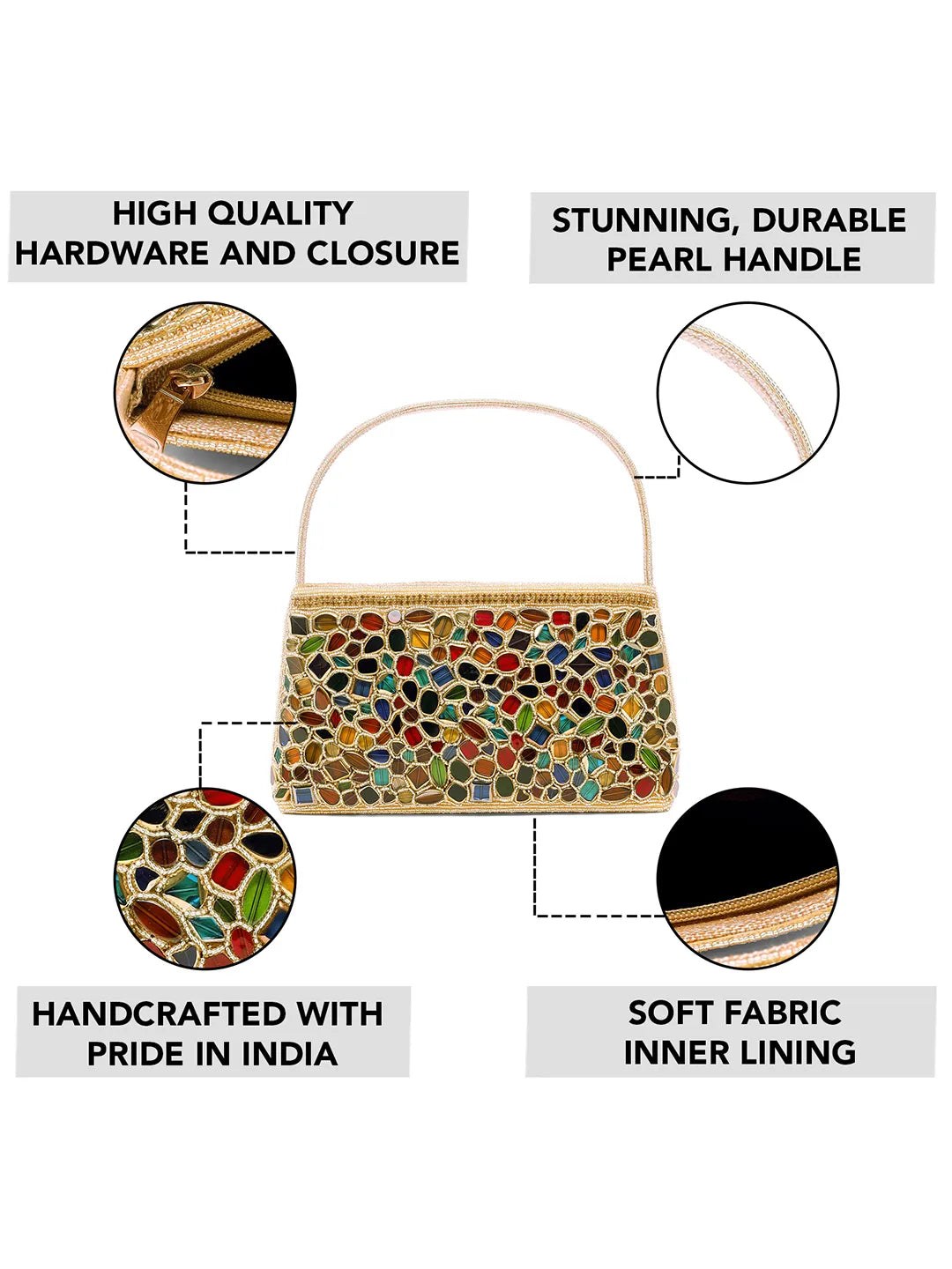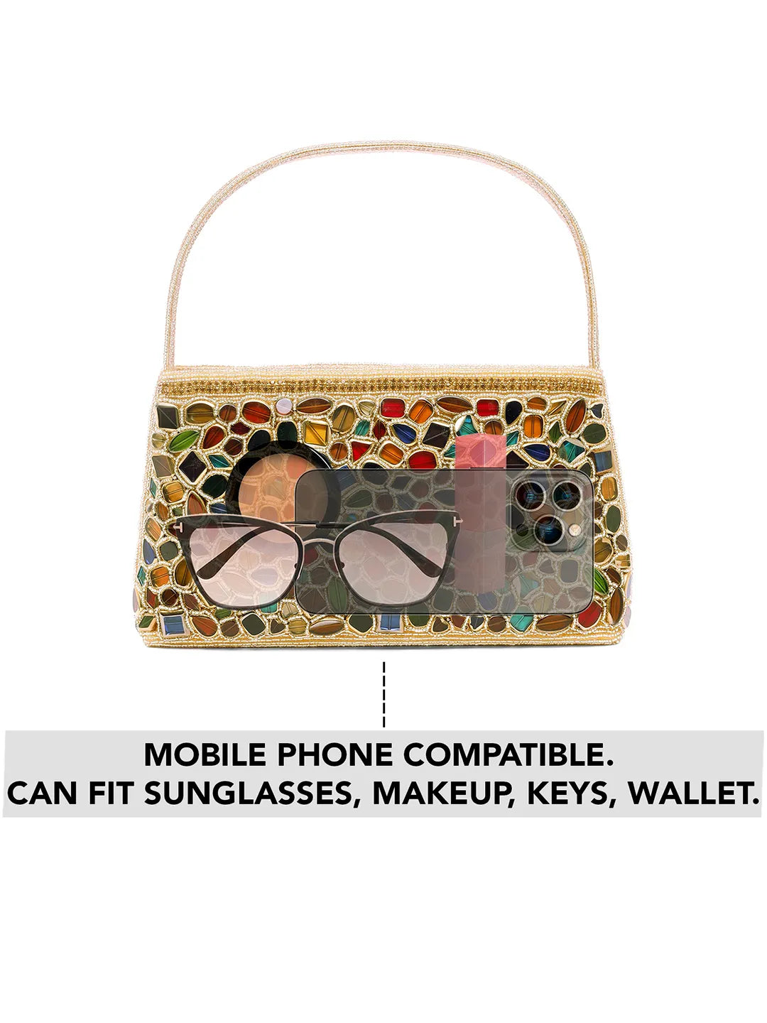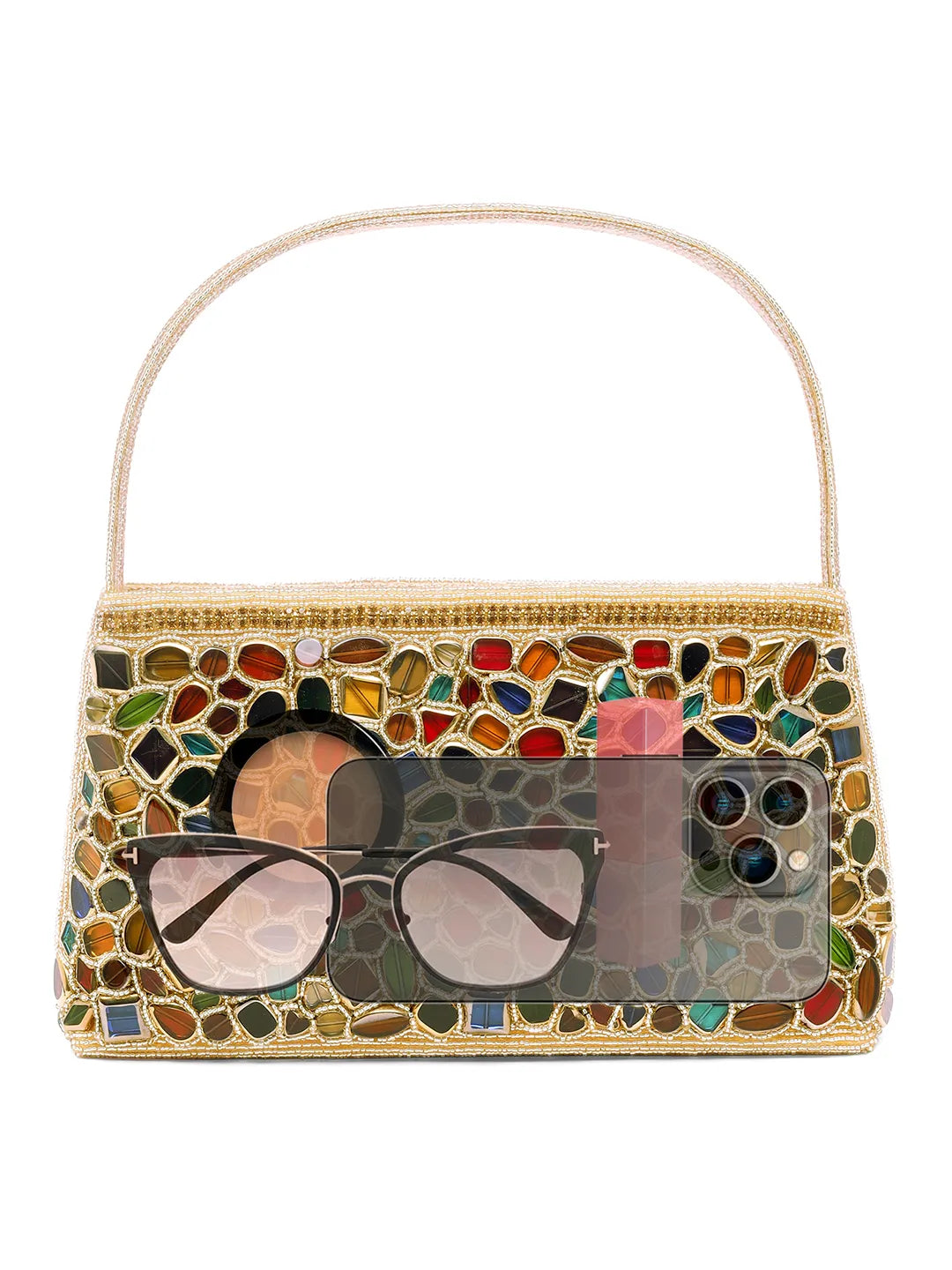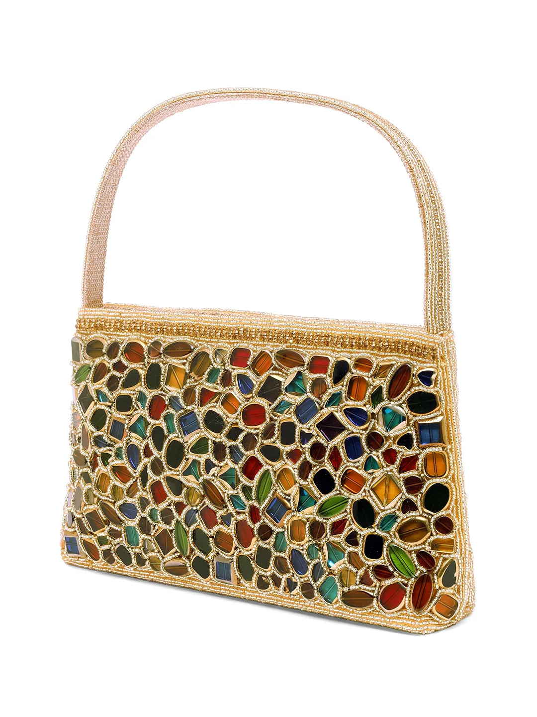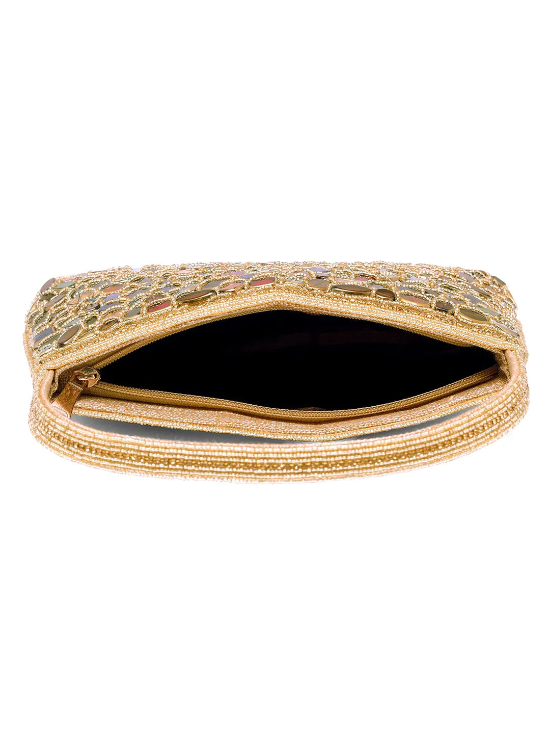 Product Name: Glam & Glow Stone Embellished Clutch - Gold - Multicolor