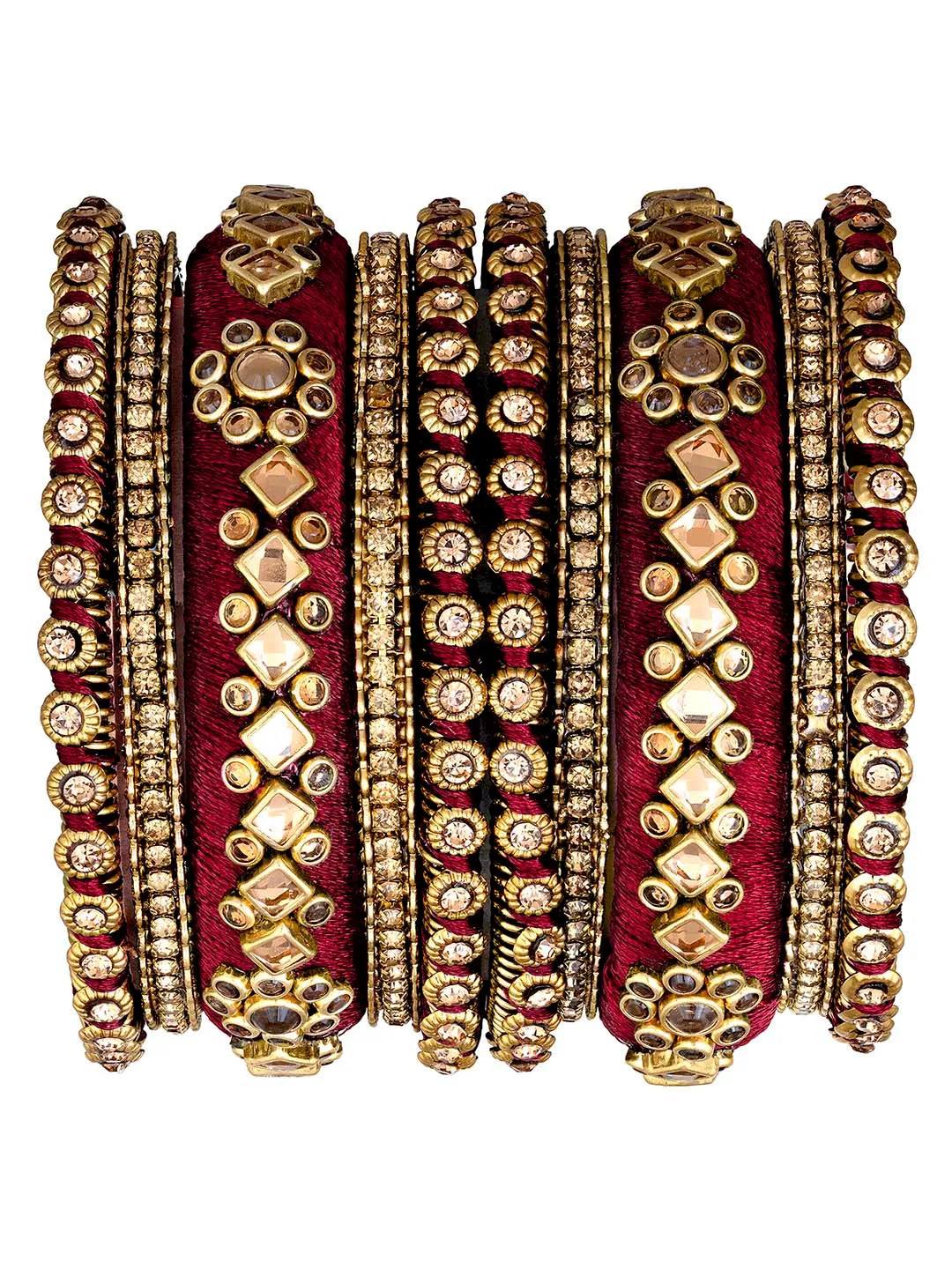 Product Name: Glamorous Empress Luxury Bangle Set - Maroon