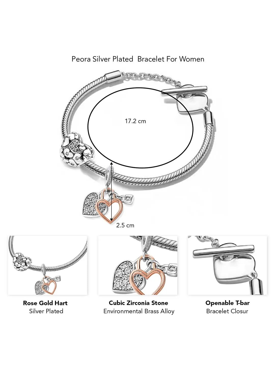 Product Name: Glamorous Heart Charm Silver Bracelet