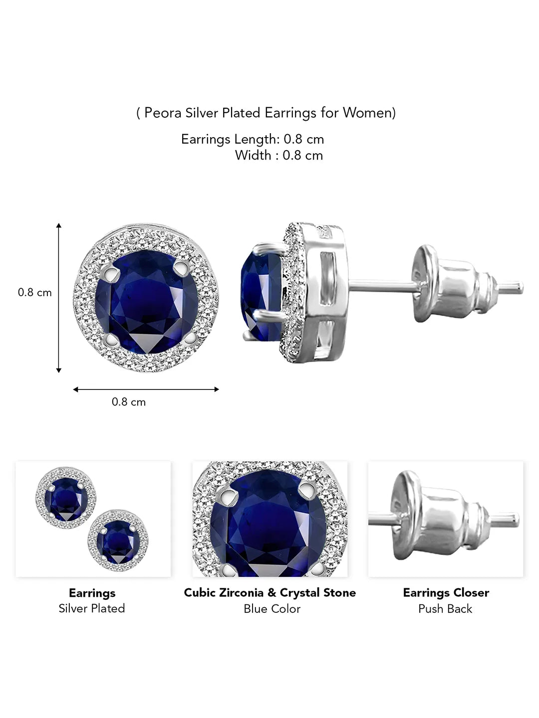 Product Name: Glamorous Sapphire Halo Stud Earrings - Blue