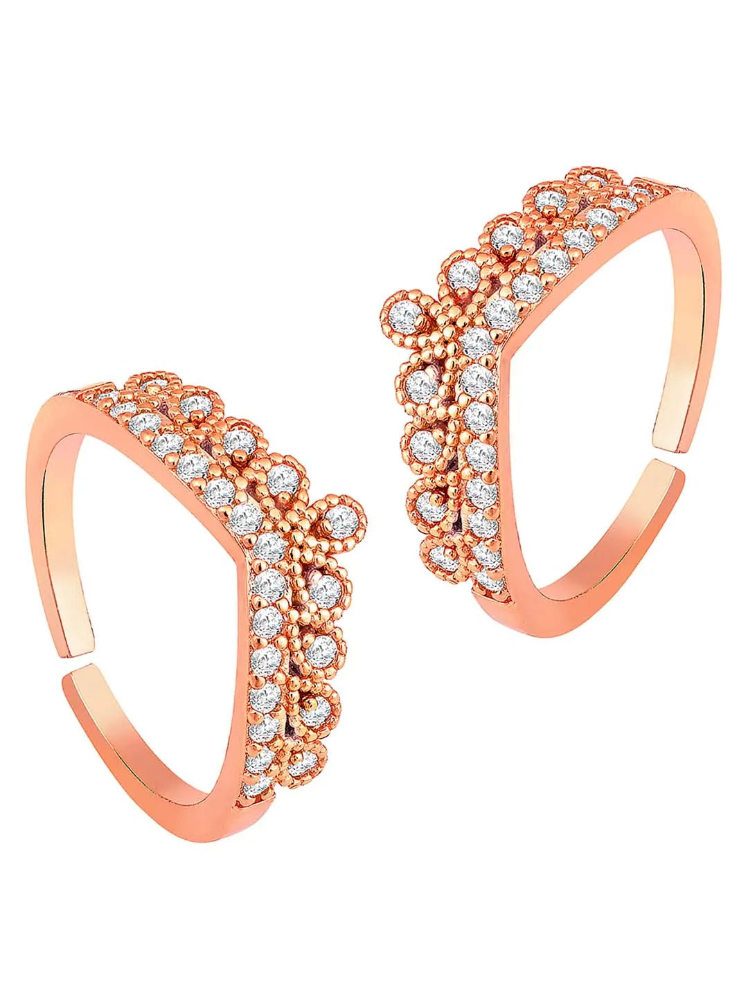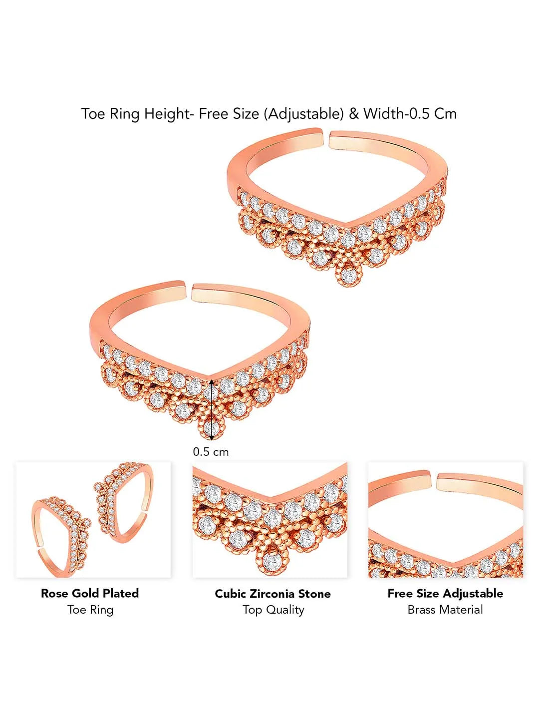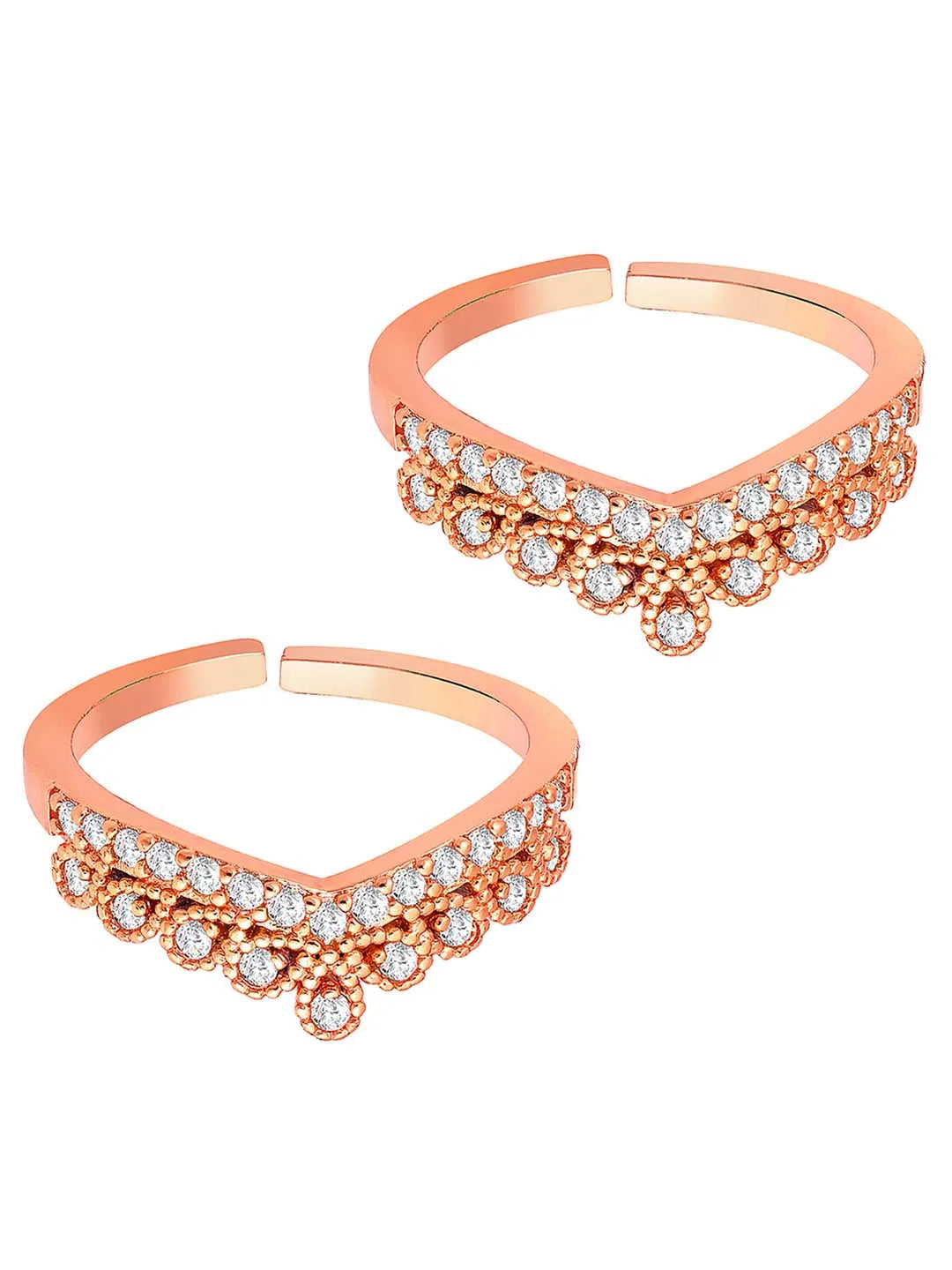 Product Name: Glamorous Stylish Luxurious CZ Toe Rings - Rose Gold