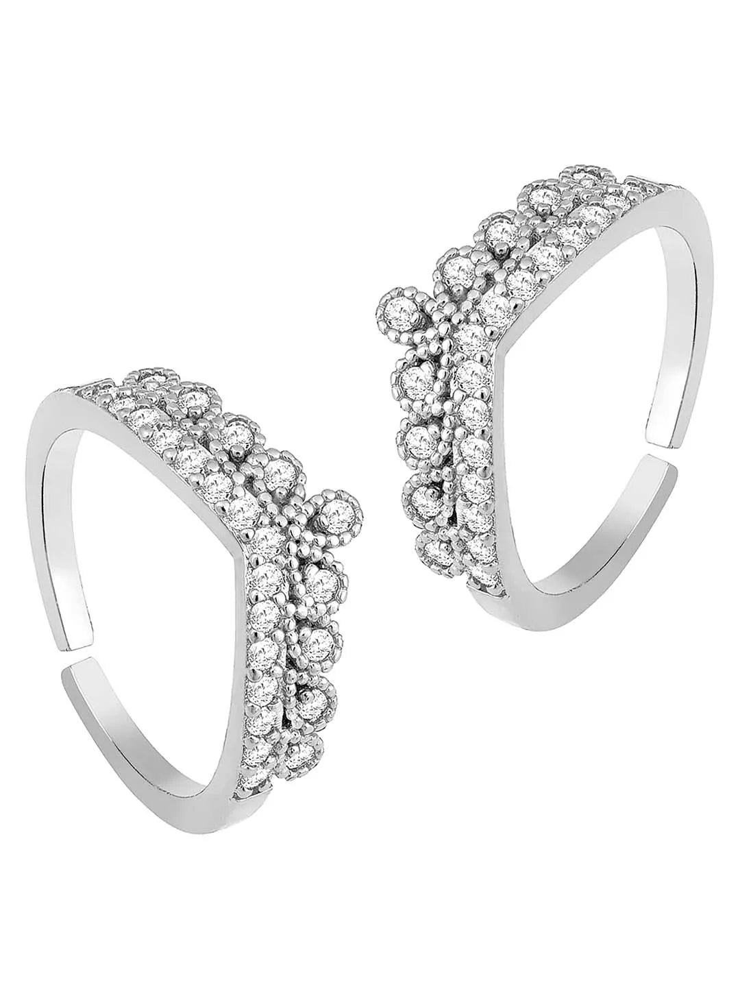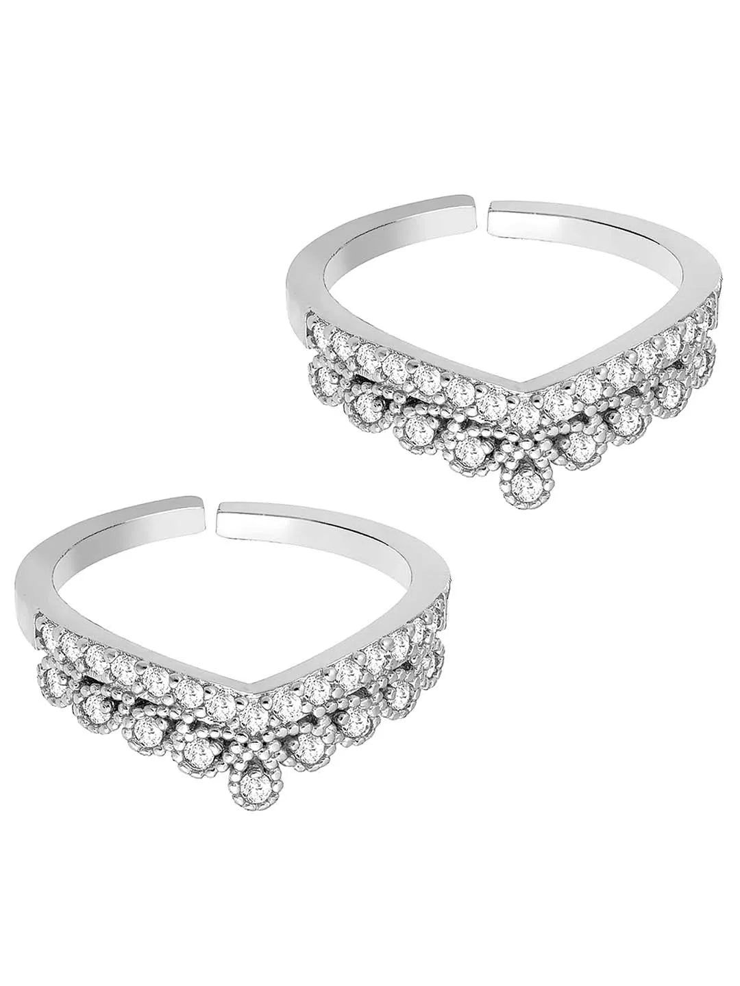 Product Name: Glamorous Stylish Luxurious CZ Toe Rings - Silver