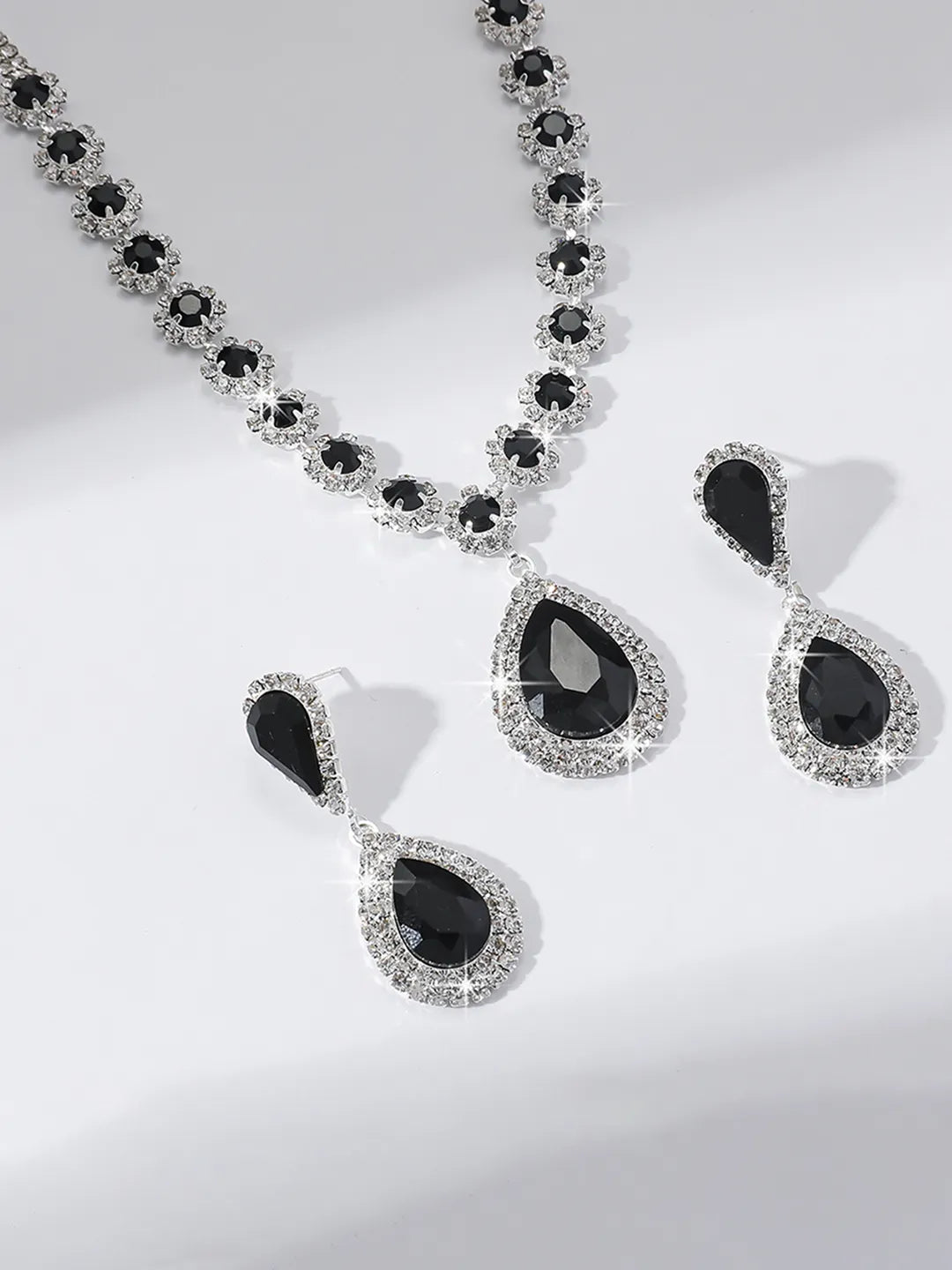 Product Name: Glamorous Teardrop Necklace Earring Set - Black