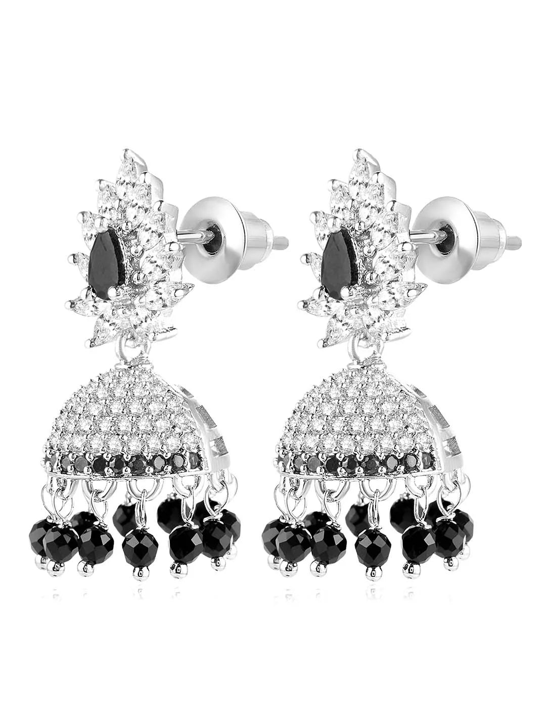 Product Name: Gleaming Elegance CZ Jhumki Earrings - Black