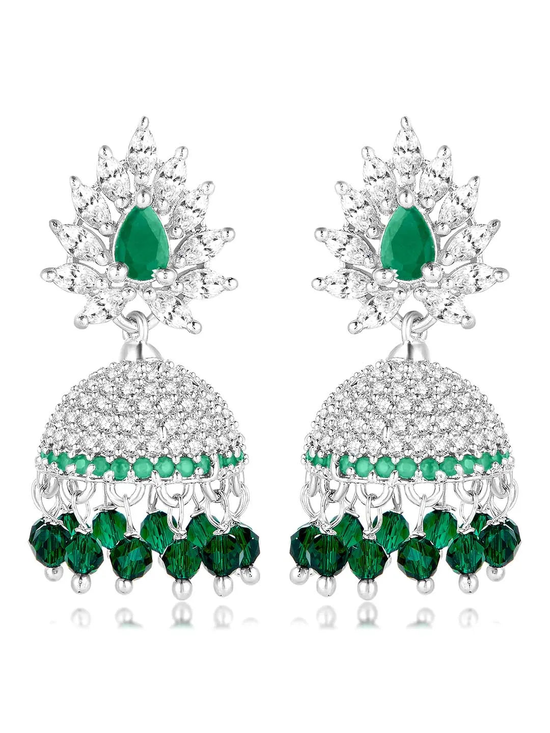 Product Name: Gleaming Elegance CZ Jhumki Earrings - Green