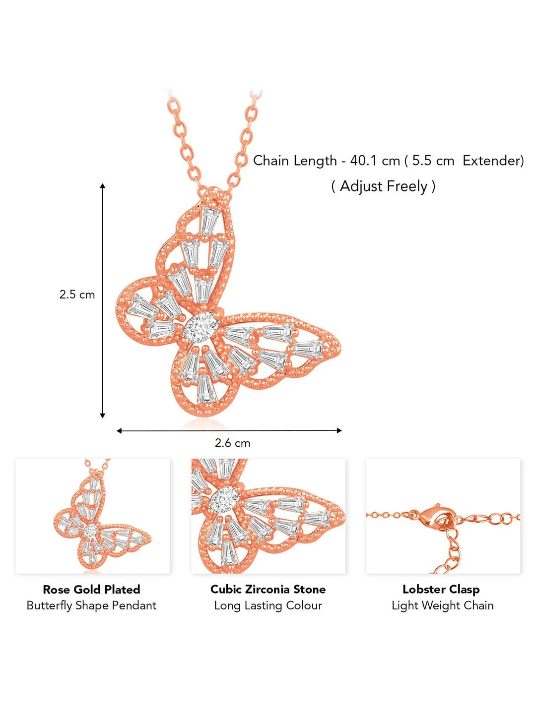 Product Name: Glistening Wings CZ Pendant Chain - Rose Gold