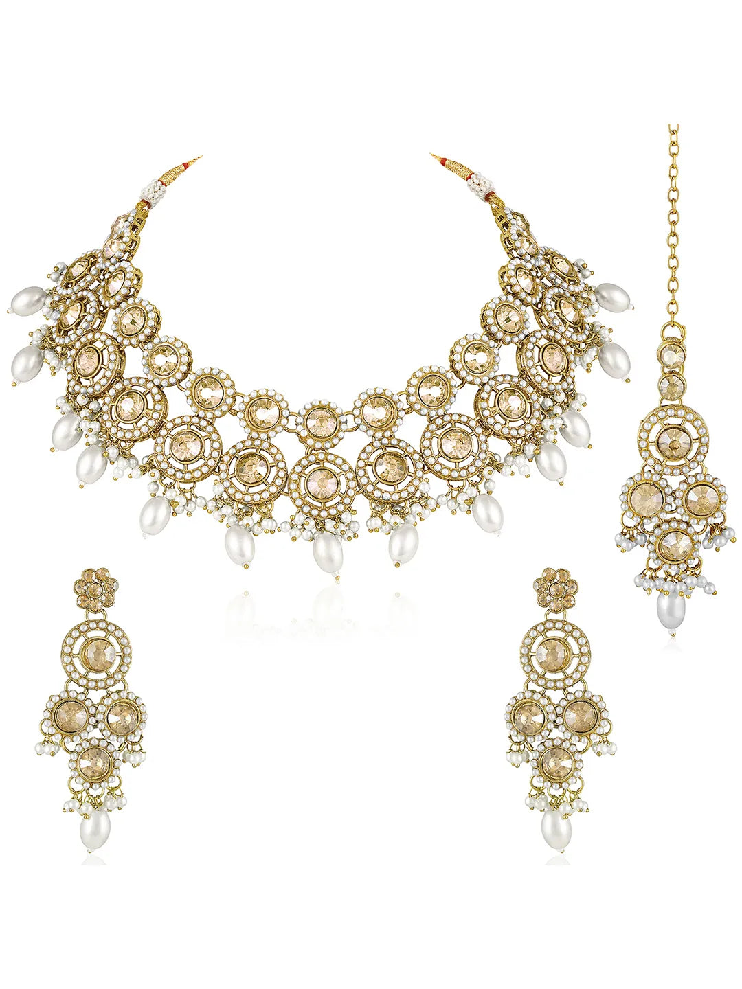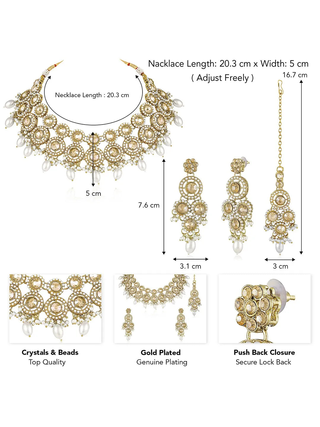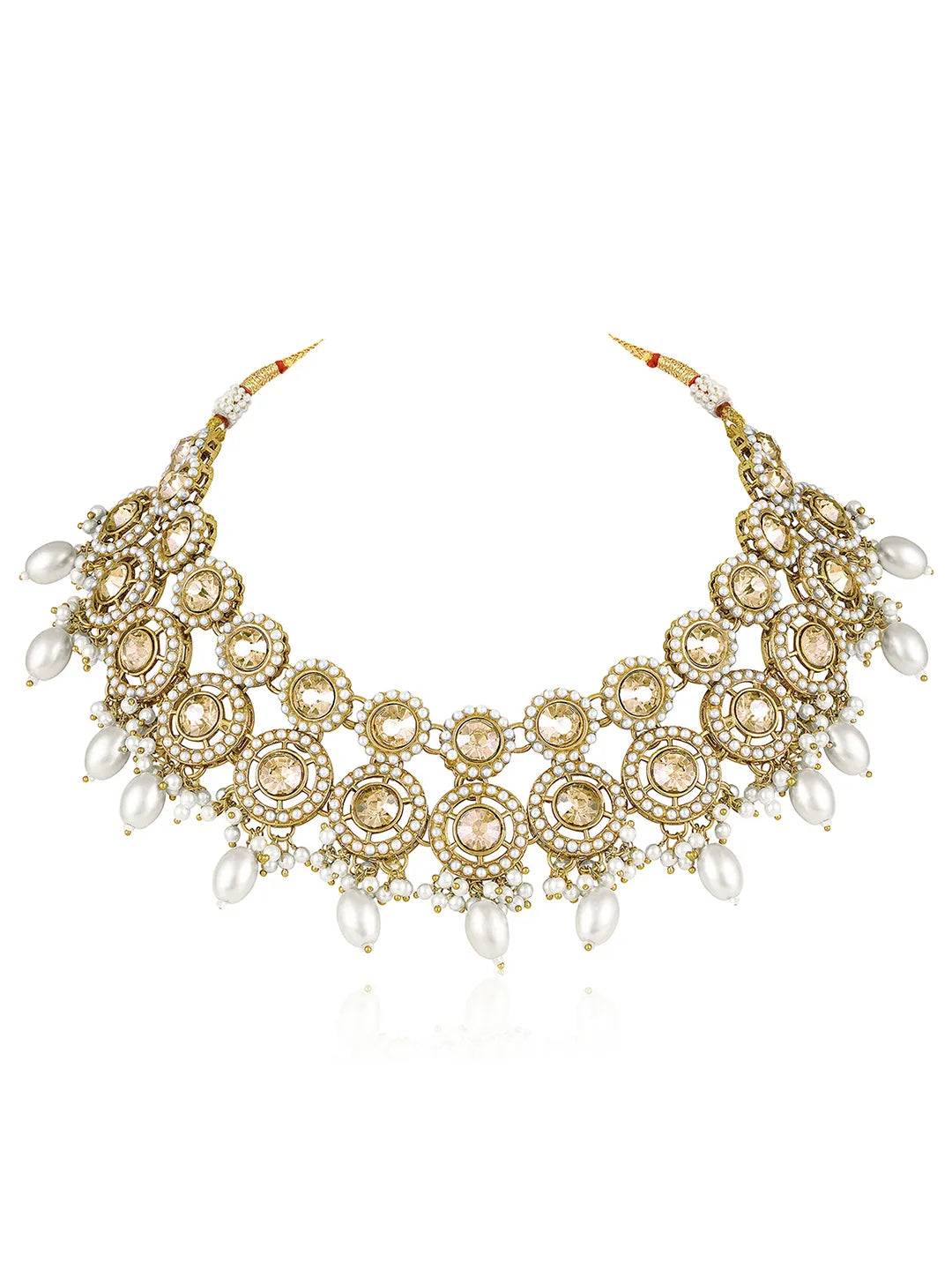 Product Name: Glowing Round Crystal Pearl Necklace Set - Gold