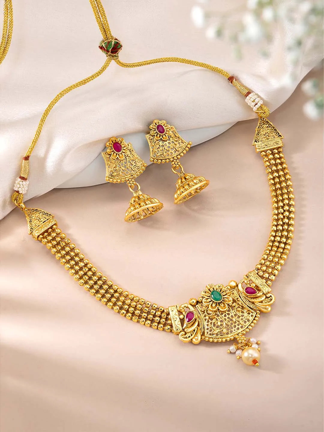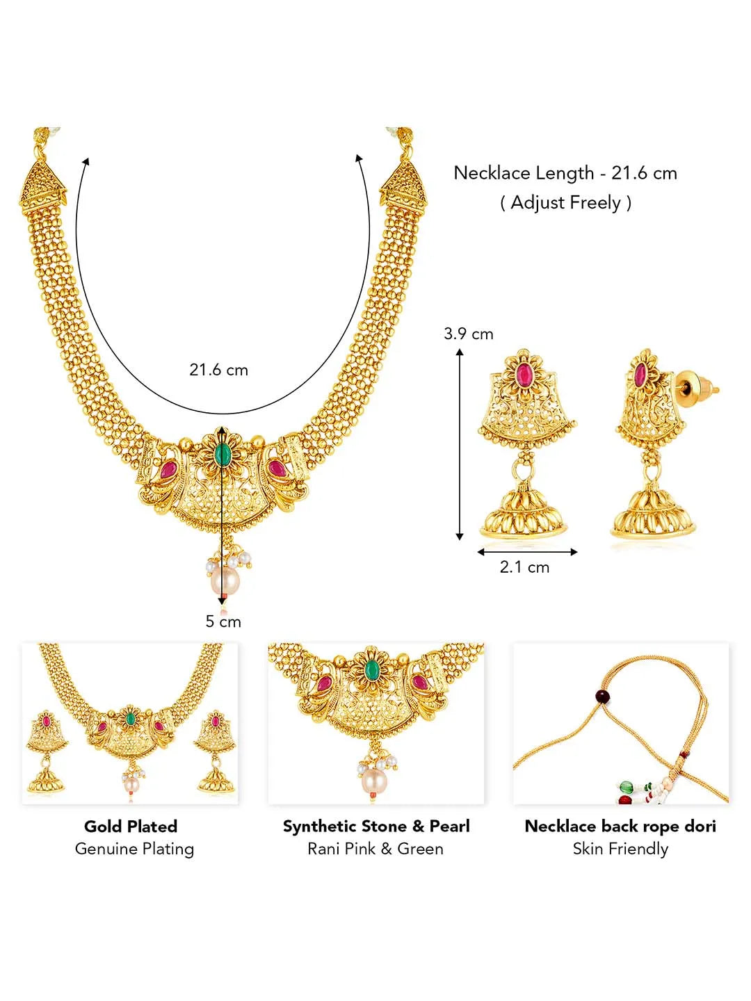 Dimensions: Necklace Length: 21.6 cm x Width: 5 cm; Earrings Length: 3.9 cm x Width: 2.1 cm; Weight: 43.49 grams